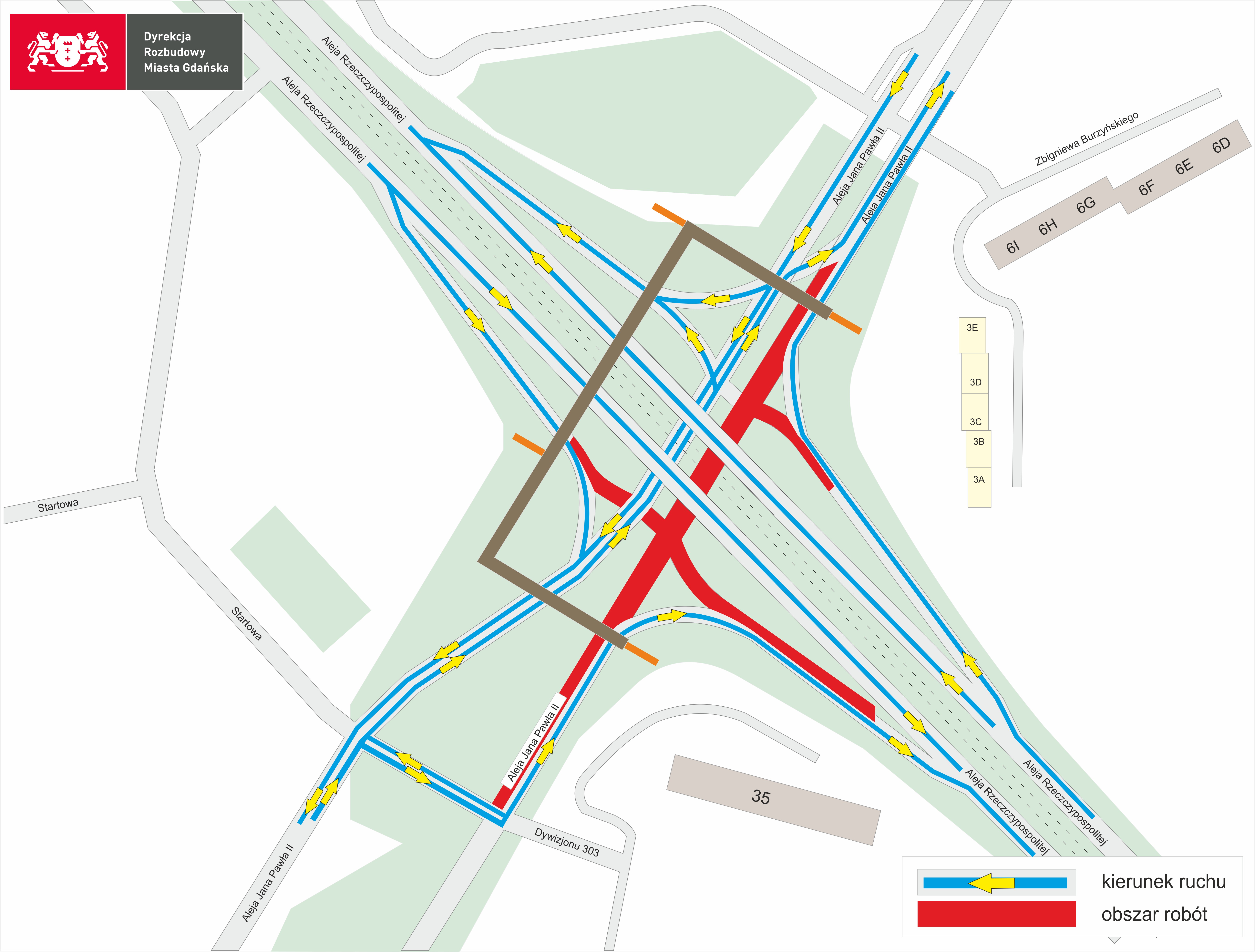 Taka organizacja ruchu utrzyma się przez kilka najbliższych miesięcy, na czas prac przy budowie systemu nowych kładek na skrzyżowaniu od strony Wrzeszcza. Wykonawcą robót jest firma Primost Południe.