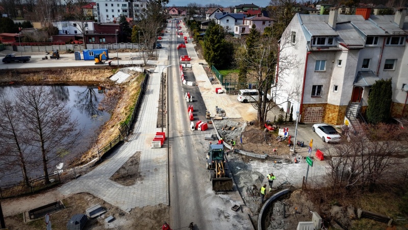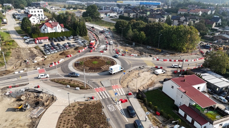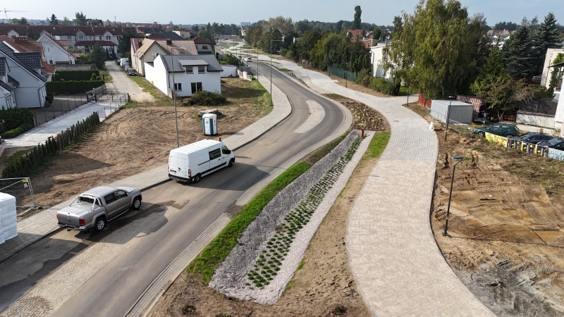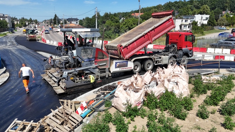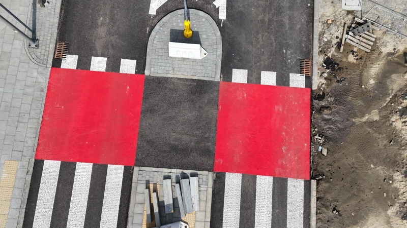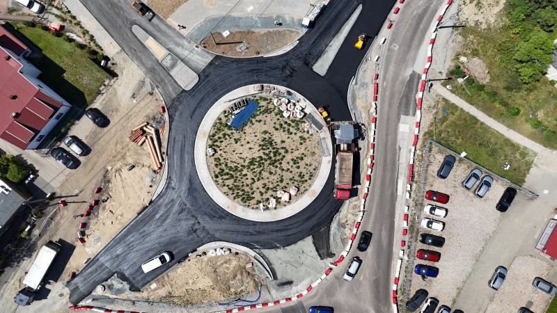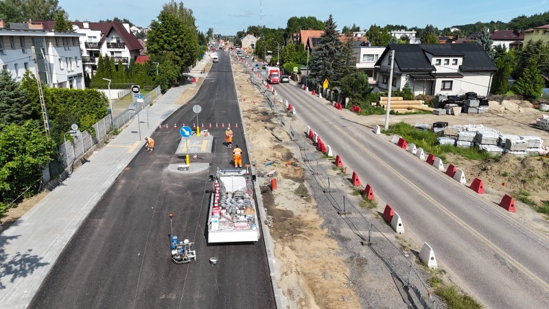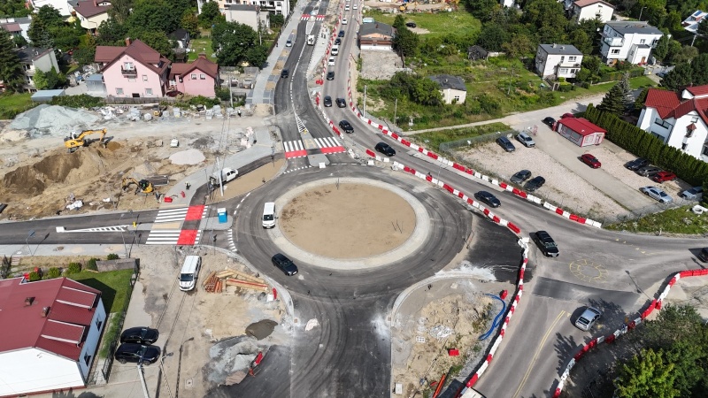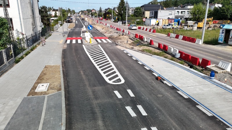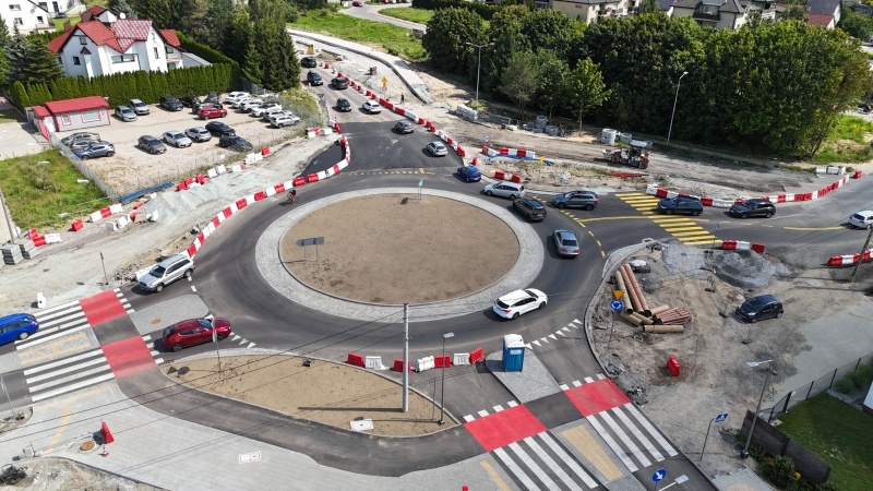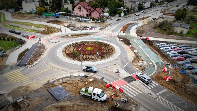 Wykonano już wszystkie nawierzchnie na jezdniach. Obecnie prowadzone są jeszcze prace związane z wykonaniem infrastruktury pieszej i rowerowej.