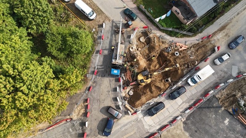 Na Kielnienskiej wykonawca przygotowuje się do ułożenia warstwy ścieralnej SMA. Trwa regulacja wpustów deszczowych i włazów studzienek kanalizacji deszczowej. Ponadto kontynuowane są roboty brukarskie. W ulicy Wodnika trwa przebudowa sieci gazowej.