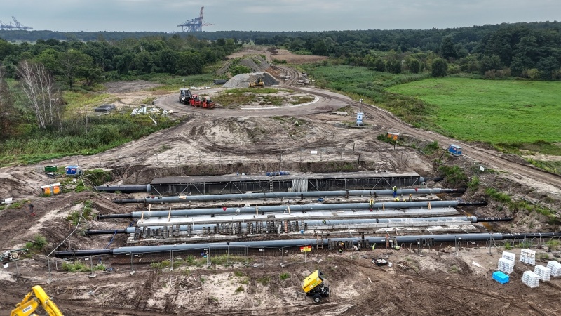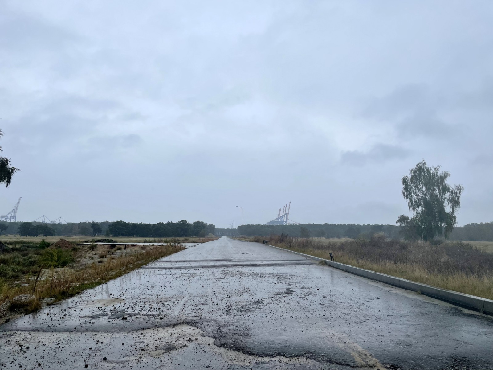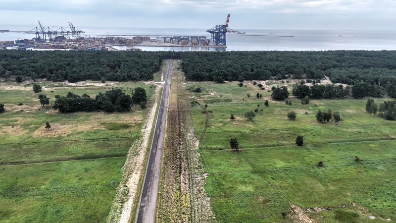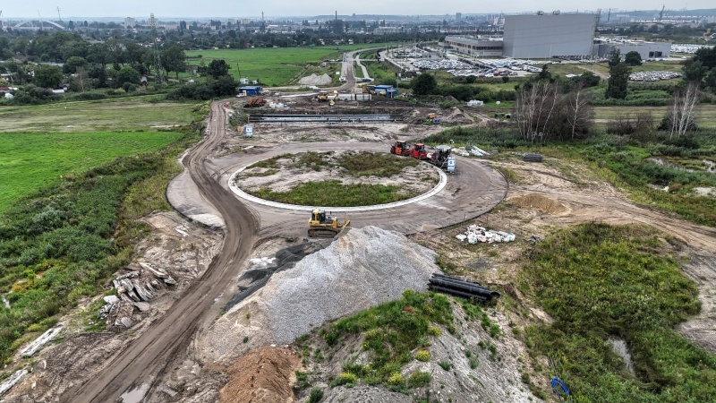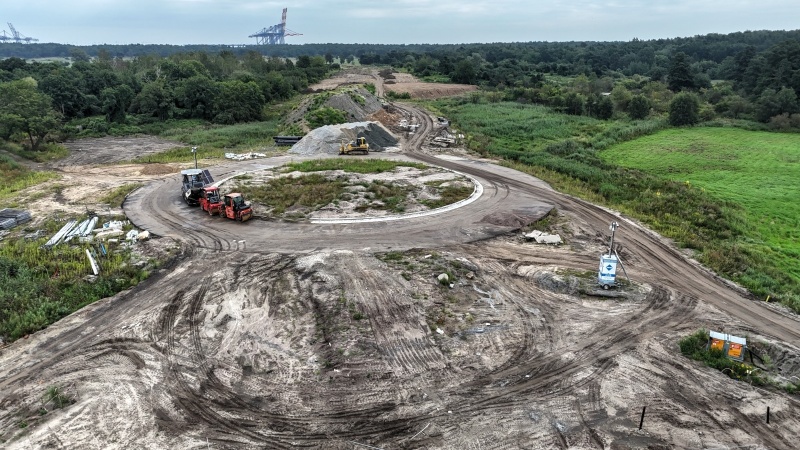Obecnie trwają prace związane z wykonaniem filarów wiaduktu drogowego nad Trasą Sucharskiego. Jednocześnie prowadzone są prace ziemne związane z budową układu drogowego bliżej terenów portu.