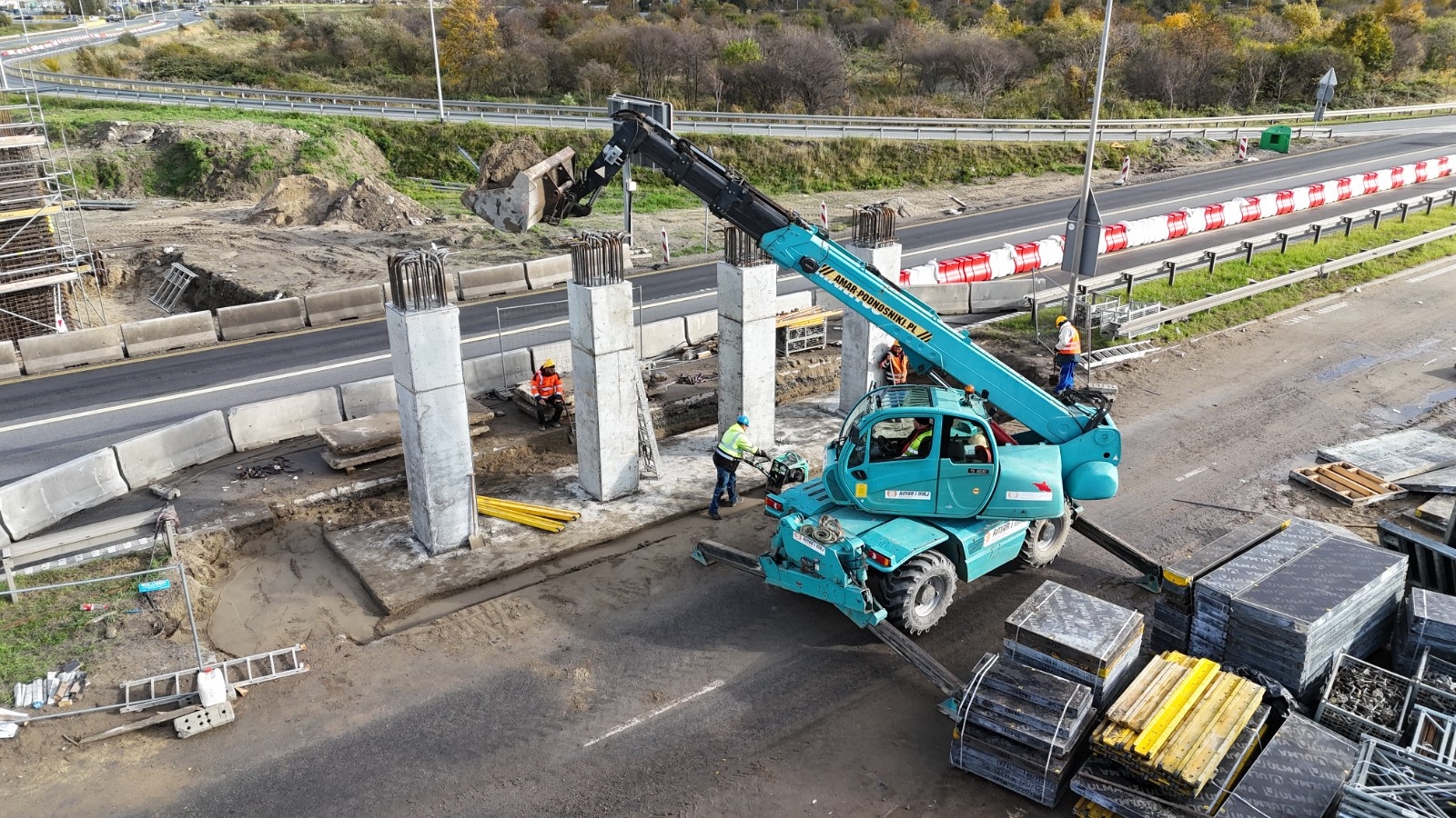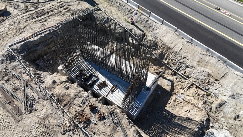 Trwa wykonywanie nowych filarów wiaduktu. Jesnocześnie na pozostałym odcinku trwają prace ziemne.