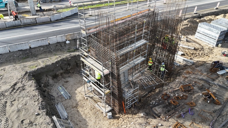 Trwają prace związane z wykonaniem konstrukcji filarów nowej estakady.