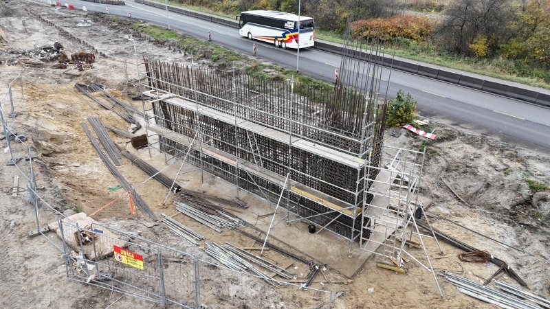 Kontynuowane są prace związane z pracami ziemnymi i budową filarów wiaduktu.