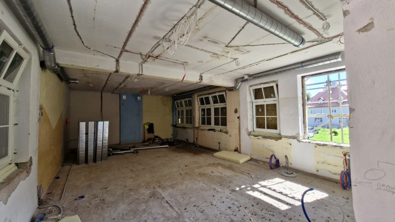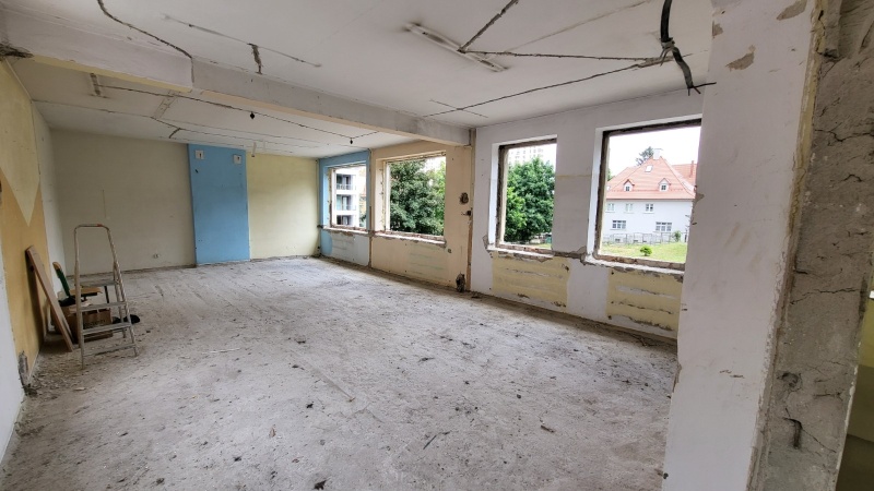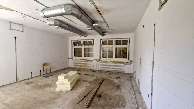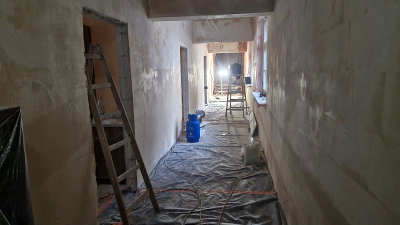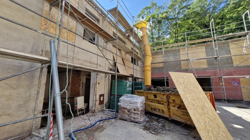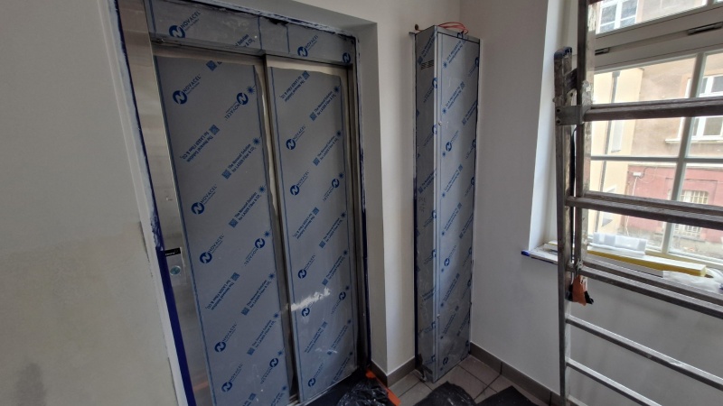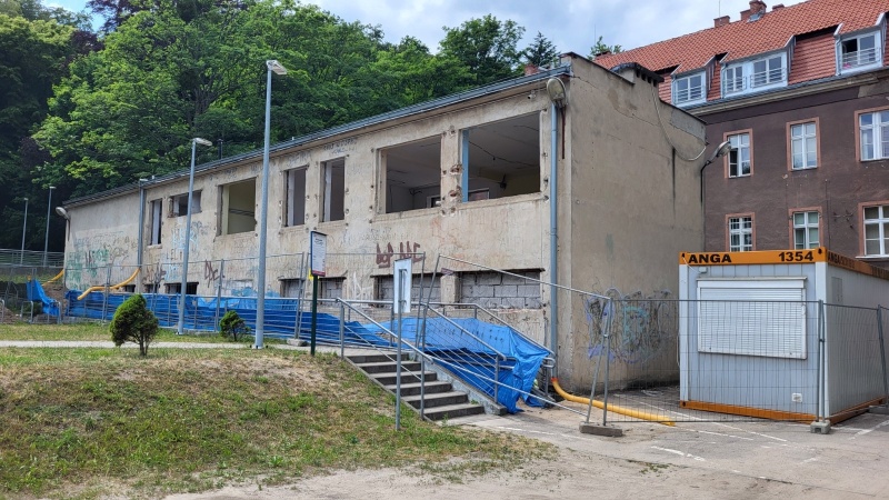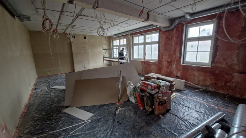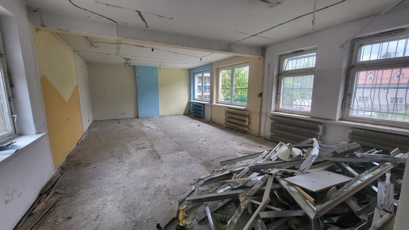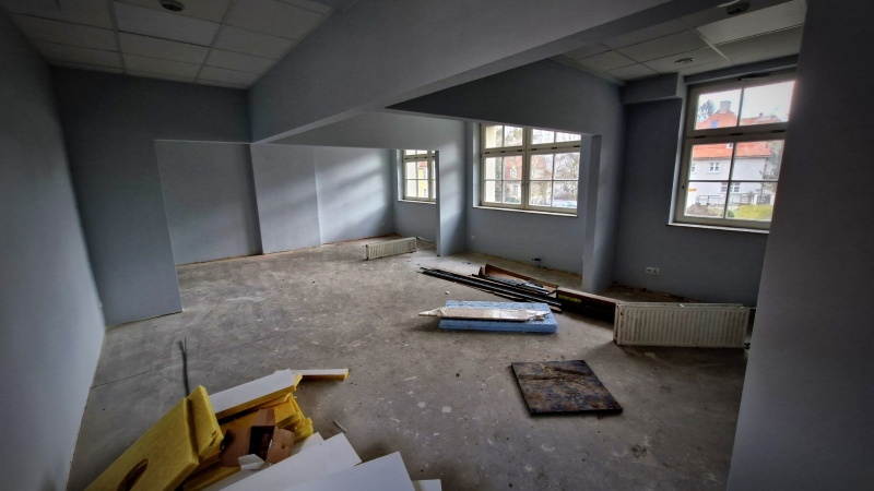 Wykonano nową elewację budynku. Obecnie prace koncentrują się wewnątrz obiektu.