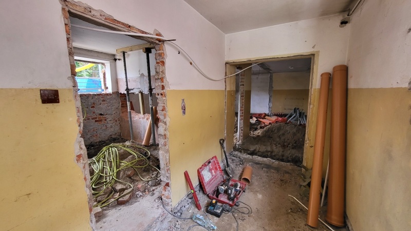 Rozpoczęto prace rozbiórkowe wewnątrz obiektu.