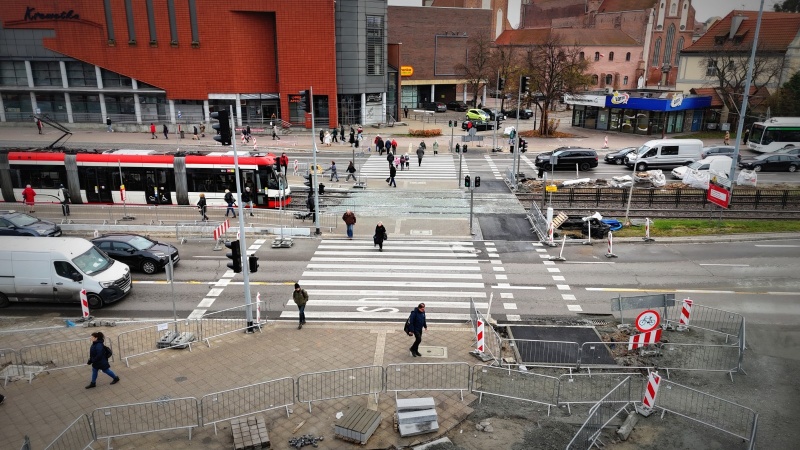 Udostępnienie przejścia nie oznacza końca robót. W najbliższym czasie Wykonawca przystąpi do prac związanych z przebudową peronów tramwajowych i montażem wiat przystankowych. Z uwagi na to, że będzie to nadal teren budowy, prosimy o zachowanie ostrożności.