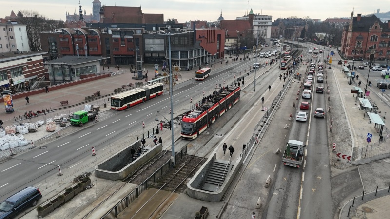 Do czasu zamontowania docelowego oszklenia, perony zostaną zabezpieczone tymczasowymi barierkami. To rozwiązanie umożliwi otwarcie dotychczas zamkniętych pasów ruchu w kierunku Huciska i Wrzeszcza, co znacznie wpłynie na płynność ruchu w okolicy dworca i ułatwi korzystanie z autobusów ZTM pasażerom.