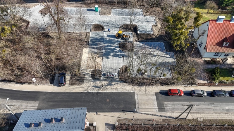 Obecnie układane są nawierzchnie na nowym parkingu.