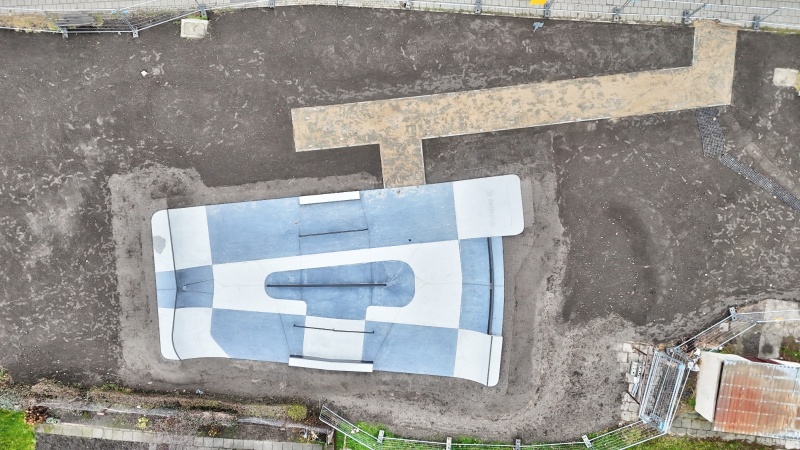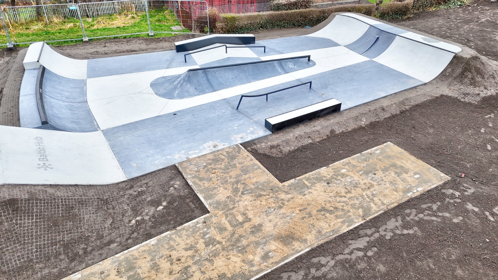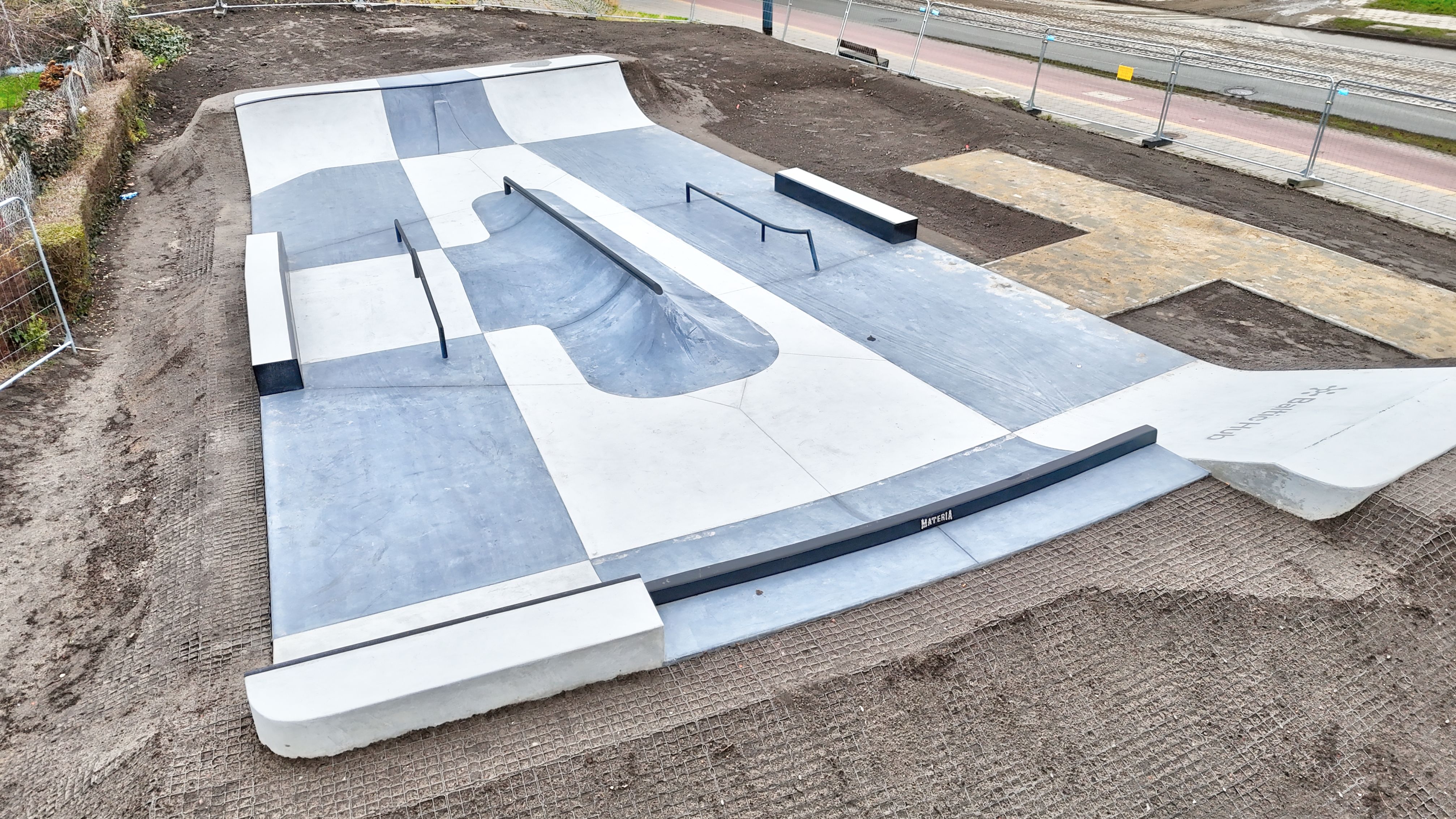W zakresie zadania znajduje sie wykonanie odpowiedniej nawierzchni betonowej gładkiej przeznaczonej do jazdy na deskorolce, rolkach, hulajnodze, oraz ustawienie elementów skateparku takich jak funboxy, rampy, banki, quatery, grindboxy, poręcze, a także montaz małej architektury: ławeczek, śmietników, stojaka na rowery.