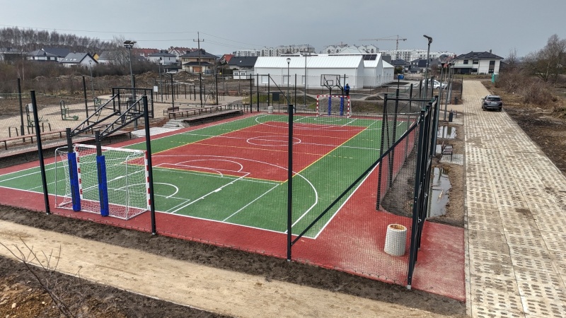Wykonano nawierzchnię boiska. Obecnie trwa montaż piłkochwytów i wyposażenia.