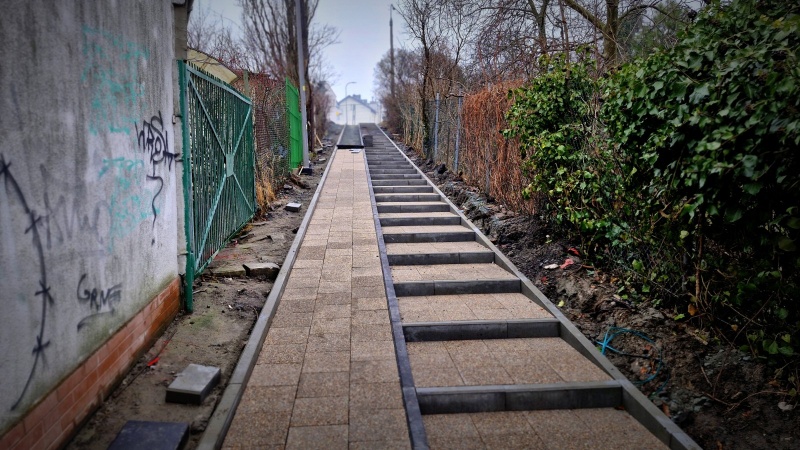 Projekt polega na zwiększeniu komfortu i bezpieczeństwa osób przemieszczających się pieszym przejściem na odcinku od ul. Dziekuć-Maleja w stronę ul. Wrocławskiej i ul. Płowce. Realizacja będzie obejmowała: remont i dostosowanie przejścia do potrzeb osób z małymi dziećmi i starszych (pochwyty, brak przeszkód dla wózków, pełne płytki chodnikowe), zagospodarowanie terenu zielonego przy wejściu od strony ul. Dziekuć-Maleja (ustawienie ławki, kosza na śmieci, uporządkowanie i uatrakcyjnienie zieleni), postawienie tablicy informacyjnej w dolnym odcinku nowego chodnika.