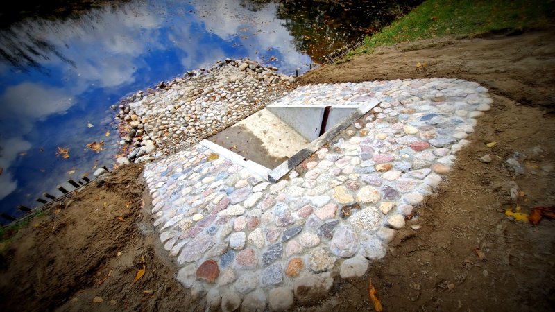 Prace są na ukończeniu. Wbudowano dwa przelewy awaryjne pomiędzy mokrym a suchym zbiornkiem.