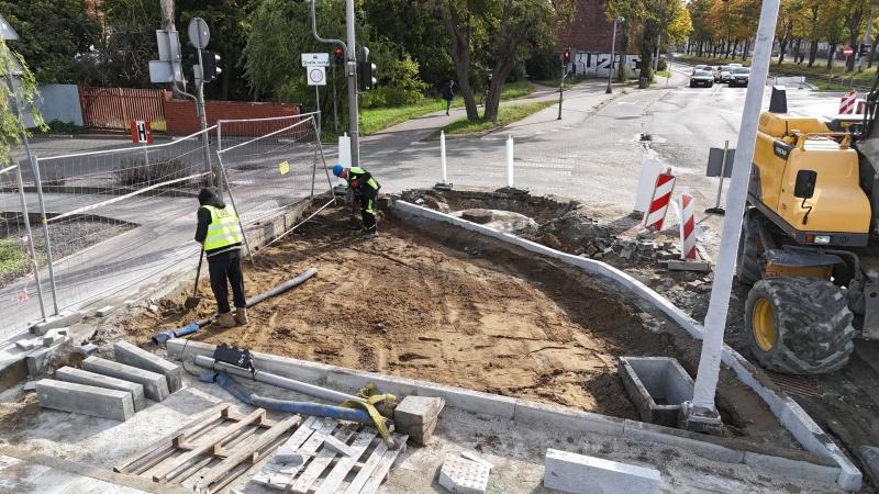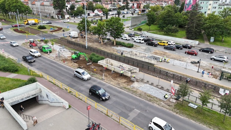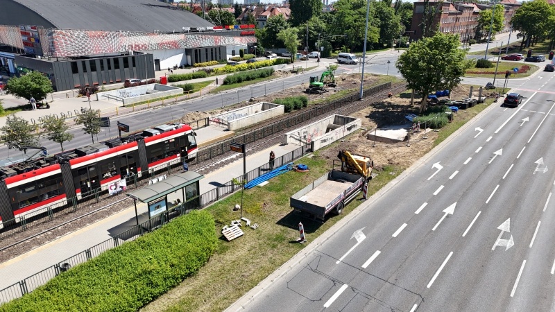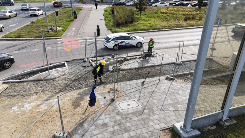 Obecnie wykonywane są m.in. chodniki i dojścia na peron tramwajowy.