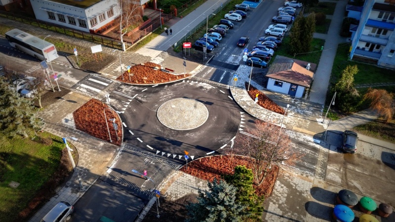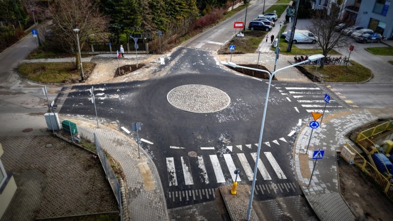 1) Przebudowa skrzyżowania ul. Hoene z ul. Krzemową na mini rondo wraz z doświetleniem przejść dla pieszych –