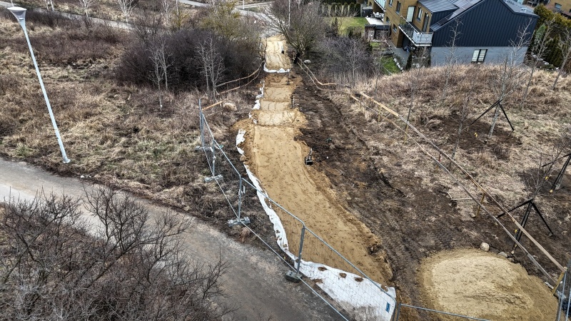 Trwają prace ziemne związane z wykonaniem konstrukcji schodów i fundamentów słupów oświetleniowych.
