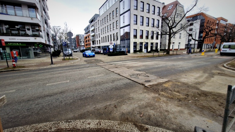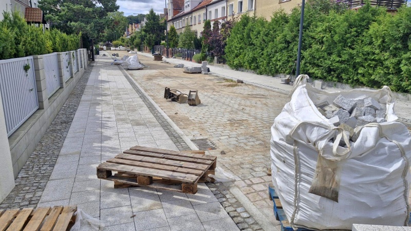 Na Zamenhofa prace są już mocno zaawansowane — na części ulicy ułożono już kostkę brukową oraz nowe chodniki. Na Żeleńskiego zdjęto już starą nawierzchnię, teraz montowane są nowe krawężniki.