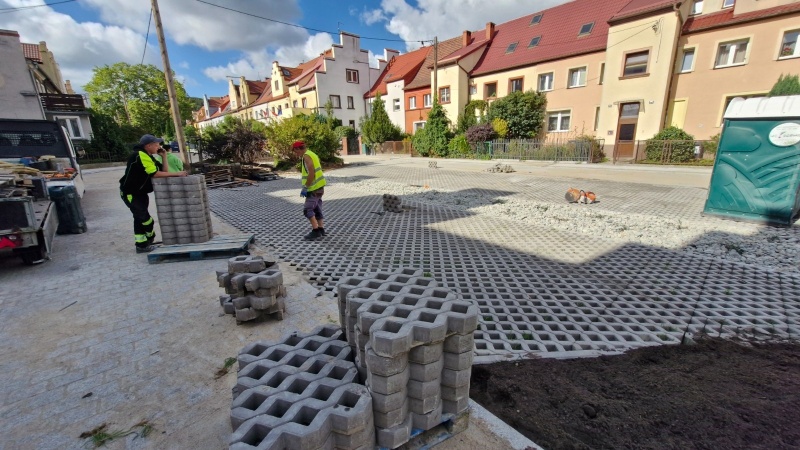 Na ul. Zamenhofa i ul. Żeleńskiego prace zmierzają ku końcowi. Układana jest nowa nawierzchnia z kostki.