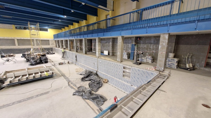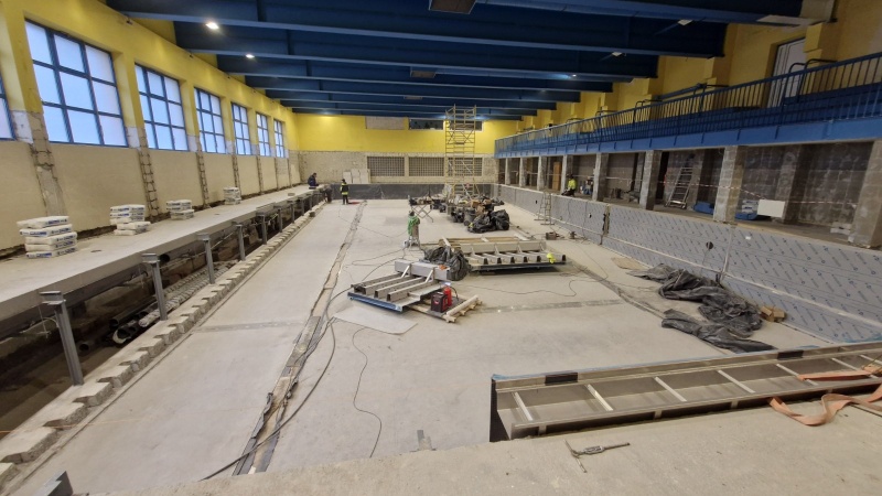 Na terenie budowy kontynuowame są prace związane z przebudową niecki basenowej.