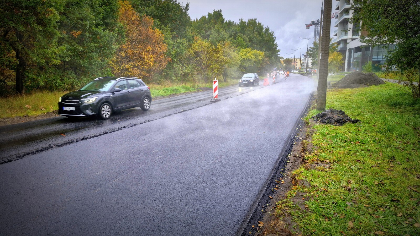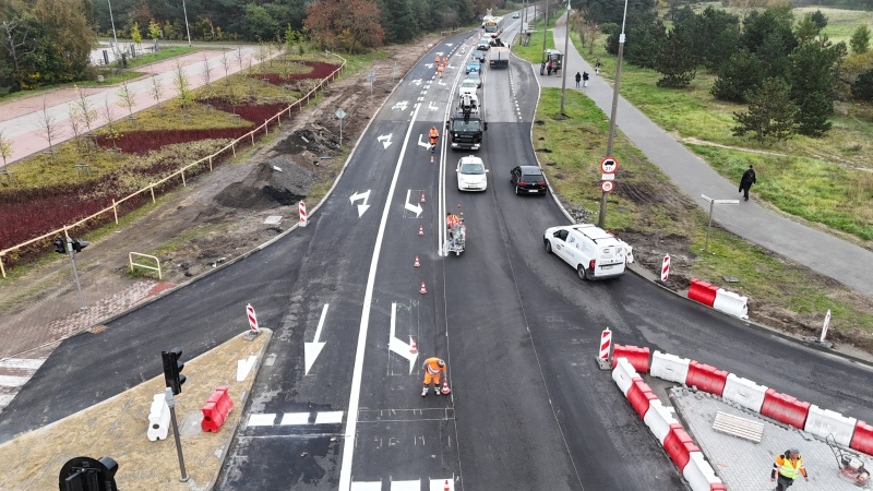 Układanie mas bitumicznych na jezdni jest na ukończeniu. W najbliższych dniach prowadzone będą dalsze prace na zjazdach. Co istotne, udostępnienie ruchu w obu kierunkach na Czarnym Dworze nie oznacza zakończenia wszystkich robót. Prace wykończeniowe będą na budowie kontynuowane w listopadzie.