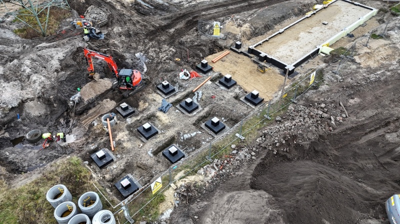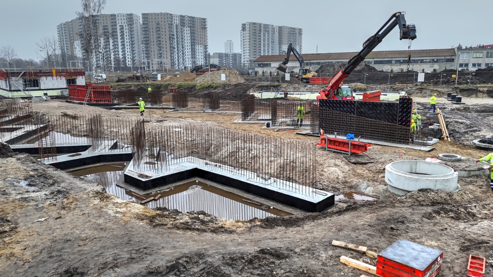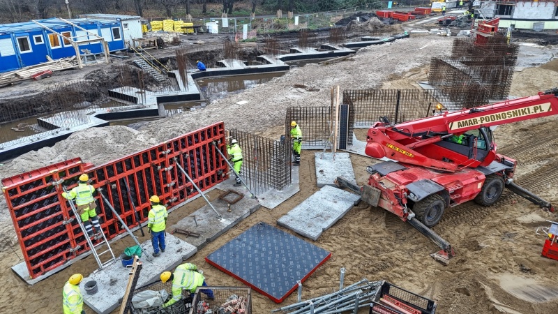 Na terenie budowy wykonano fundamenty pod nowe obiekty.