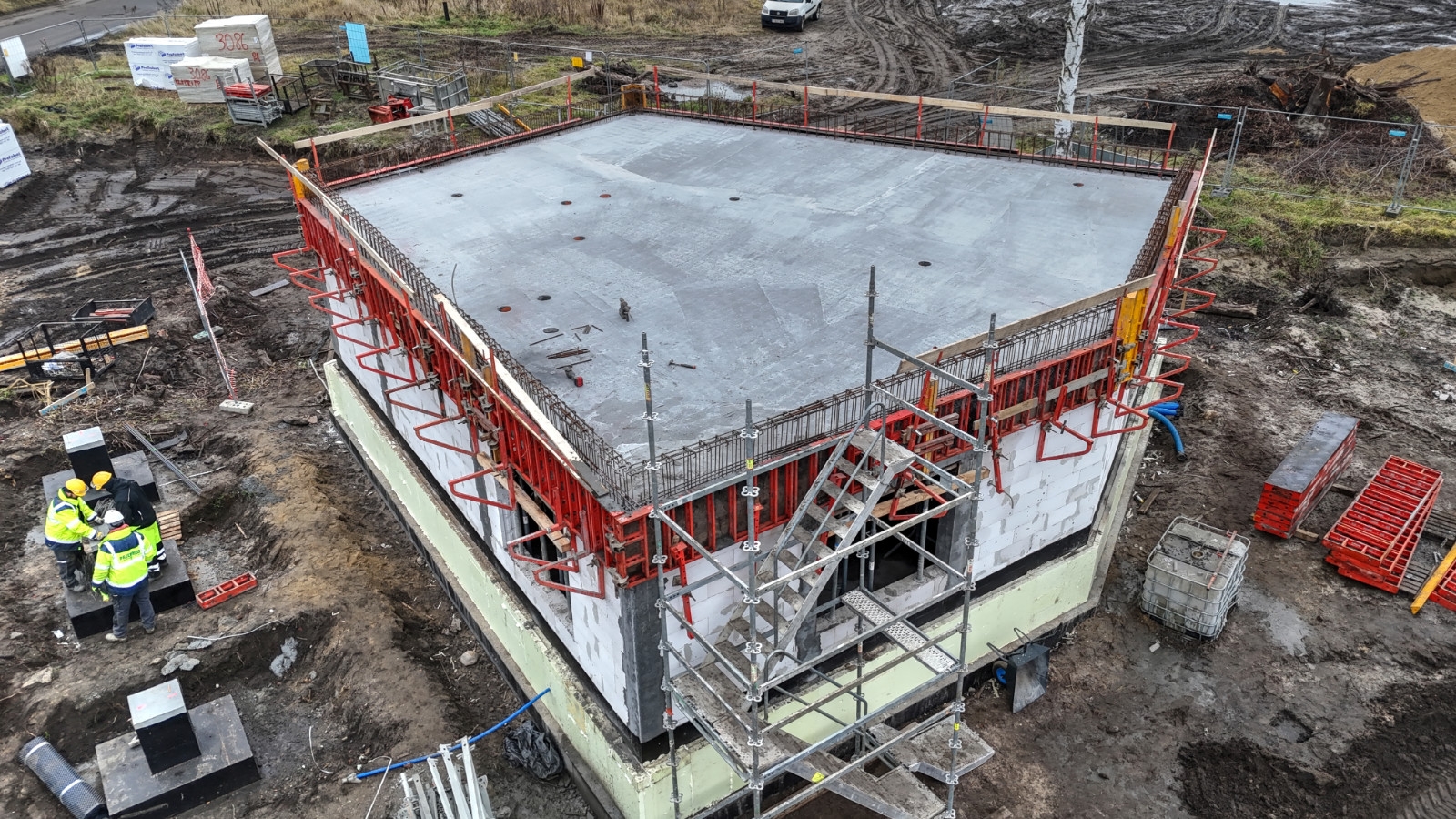 Etap murowania ścian parteru w dwóch budynkach został ukończony, z kolei rozpoczęta została budowa stropów budynków biurowych. Wykonano też warstwy chudego betonu pod posadzki oraz zakończono izolacje, które zabezpieczą obiekt przed wilgocią i zimnem.