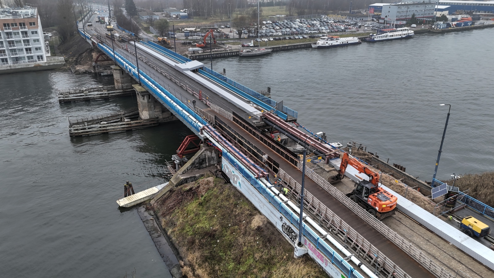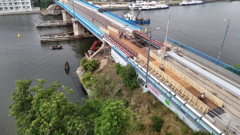– Dzisiaj zamykamy etap robót związany z decyzją nakazową. W najbliższych dniach skoncentrujemy się na wykonaniu i montażu specjalnych kładek pieszo-rowerowych, które pojawią się nad wykopami po obu stronach mostu. Kładki zostaną wyposażone w odpowiednią infrastrukturę i uzbrojenie, a ich konstrukcja umożliwi bezpieczny ruch pieszych i rowerzystów, bez konieczności zsiadania z roweru - podkreśla Krzysztof Małkowski, dyrektor Dyrekcji Rozbudowy Miasta Gdańska. - Równolegle kończymy budowę rozjazdu torowego w rejonie ulicy Głębokiej. Pozwoli to na zlokalizowanie przystanku tramwajowego bliżej mostu, co nie tylko skróci czas dojścia, ale też znacząco poprawi komfort korzystania z komunikacji miejskiej. Trwa również postępowanie przetargowe związane z przebudową całego obiektu mostowego – jesteśmy na etapie rozstrzygania ofert i zmierzamy do podpisania umowy z wykonawcą na przełomie lipca i sierpnia. Przebudowa będzie kompleksowa: po wcześniejszym podparciu – a konstrukcja wsporcza już została wykonana – rozbierzemy przyczółki, wzmocnimy podłoże i odbudujemy je. Odmienimy również otoczenie mostu. Pojawi się nowa zieleń, a całość zyska nową jakość – zapowiada dyrektor Małkowski.