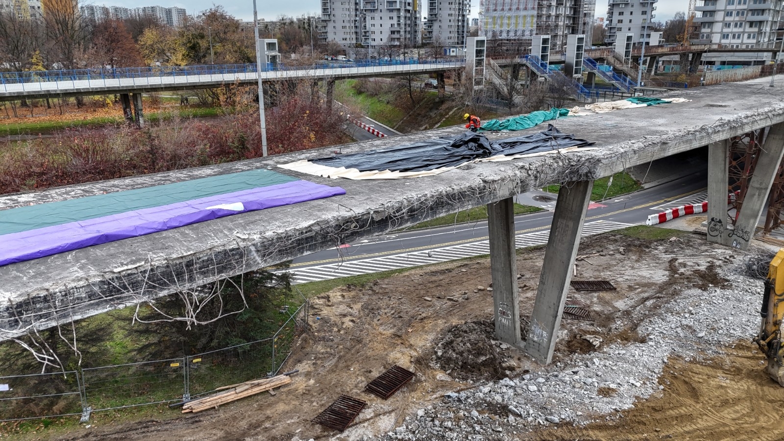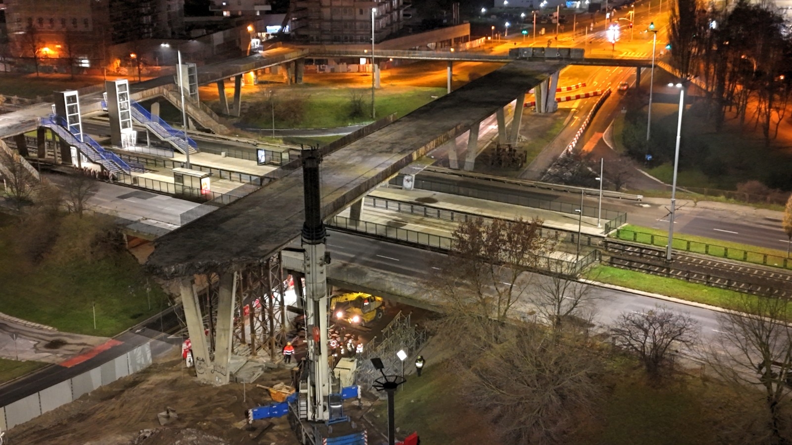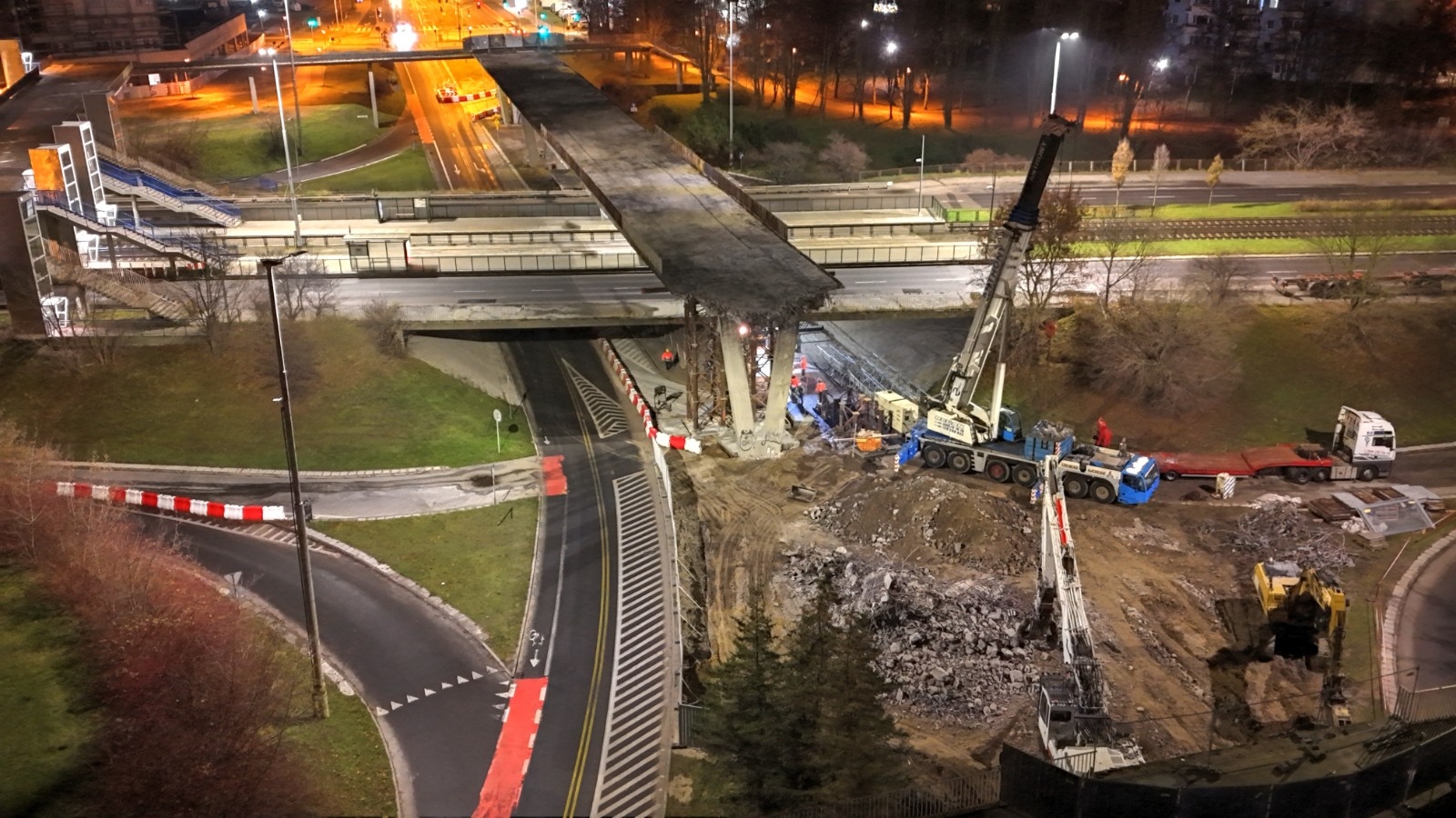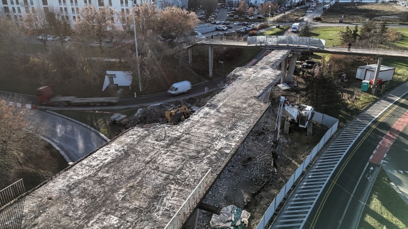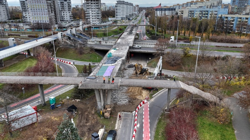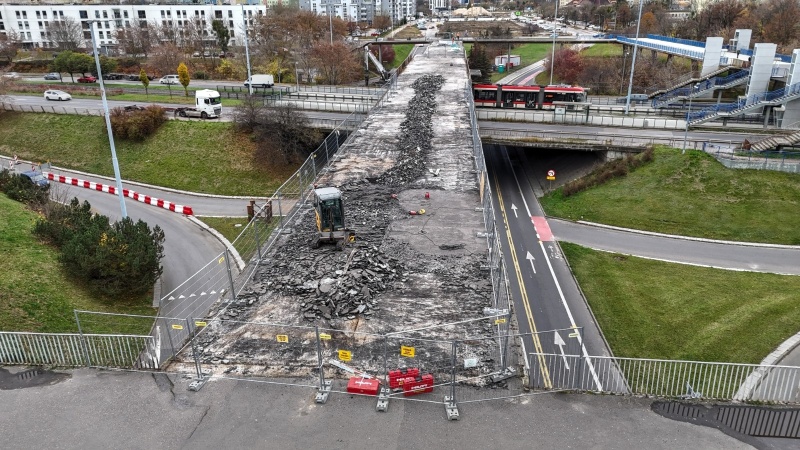 25.10.2025 r. wprowadzona została tymczasowa organizacja ruchu, która umożliwiła bezpieczne rozpoczęcie rozbiórki części kładki dla pieszych. Obecnie prace postępują zgodnie z harmonogramem.