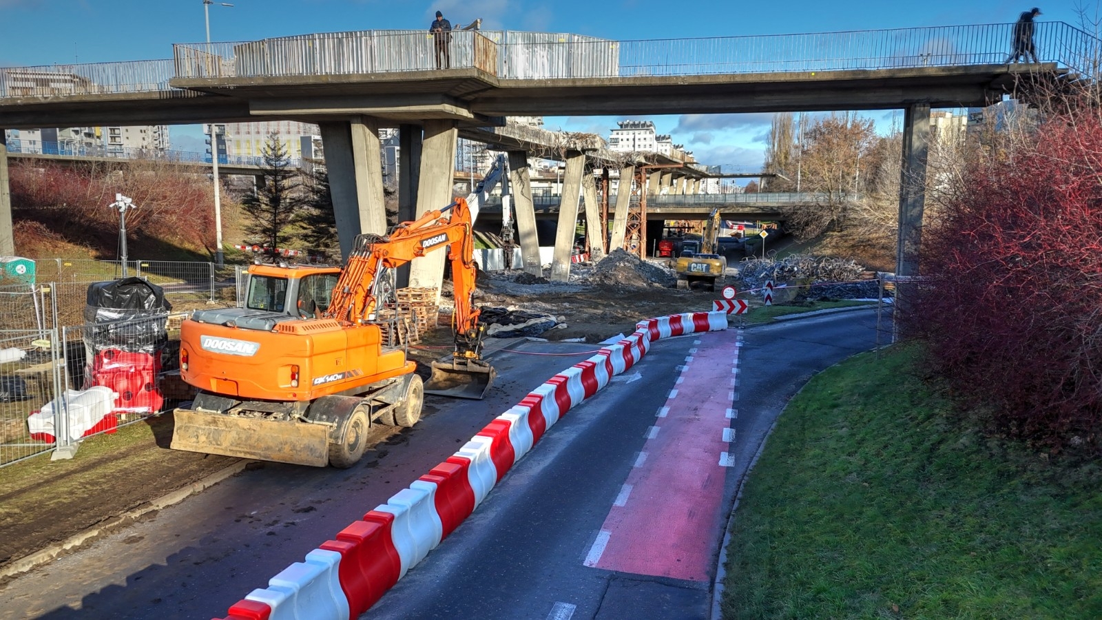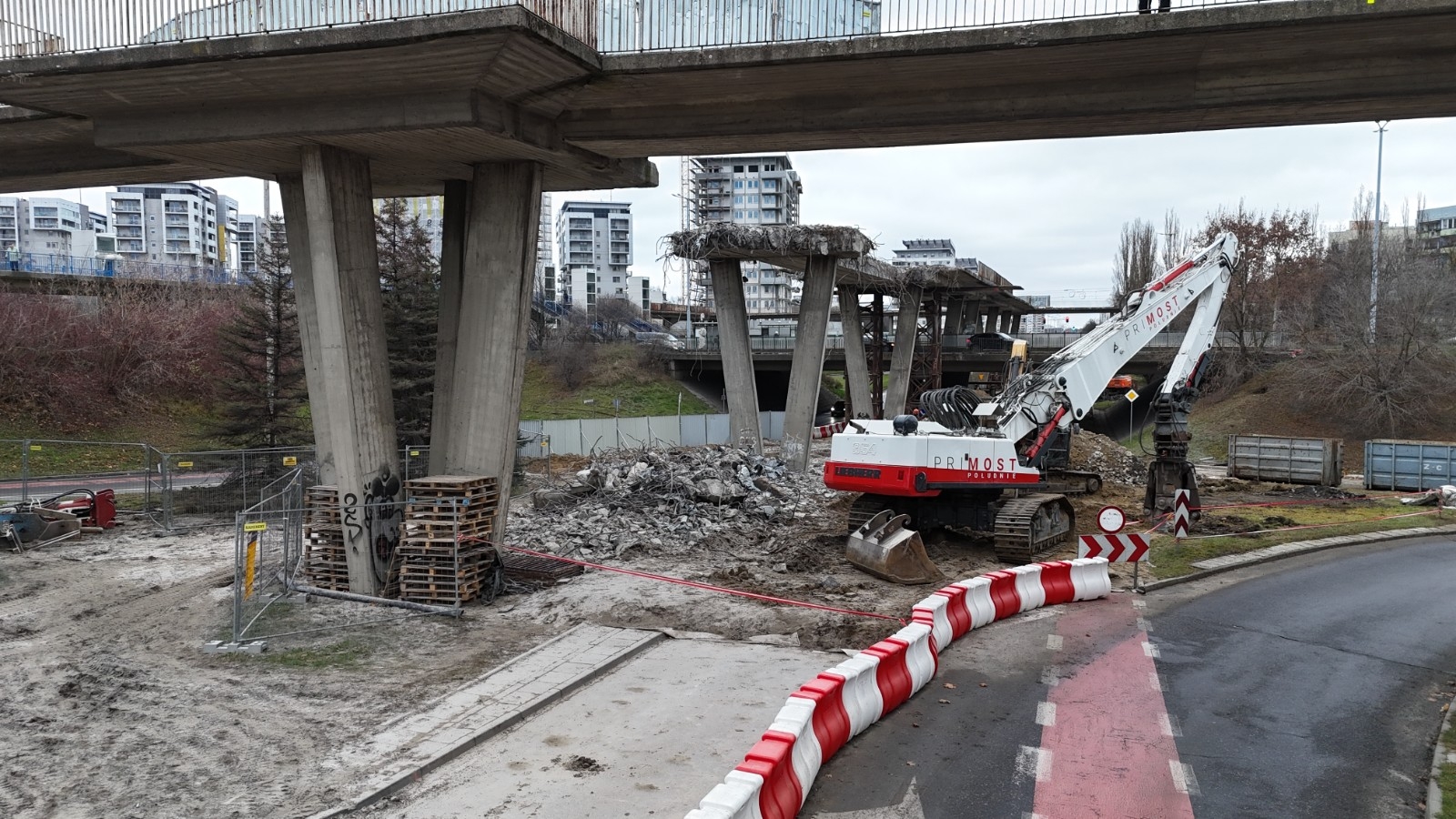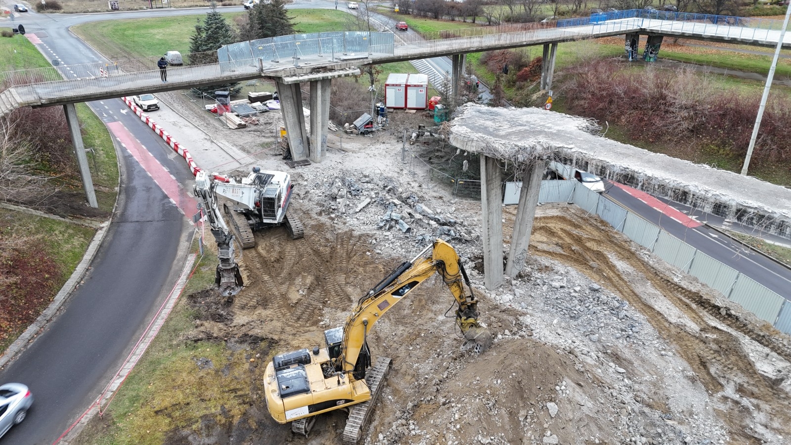 25.10.2025 r. wprowadzona została tymczasowa organizacja ruchu, która umożliwiła bezpieczne rozpoczęcie rozbiórki części kładki dla pieszych. Obecnie prace postępują zgodnie z harmonogramem.