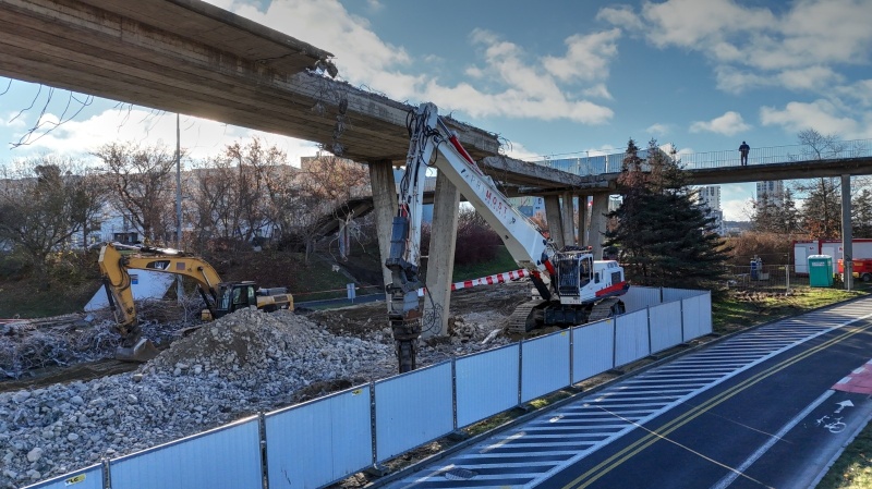 Kontynuowane są prace rozbiórkowe wschodniej części kładki.