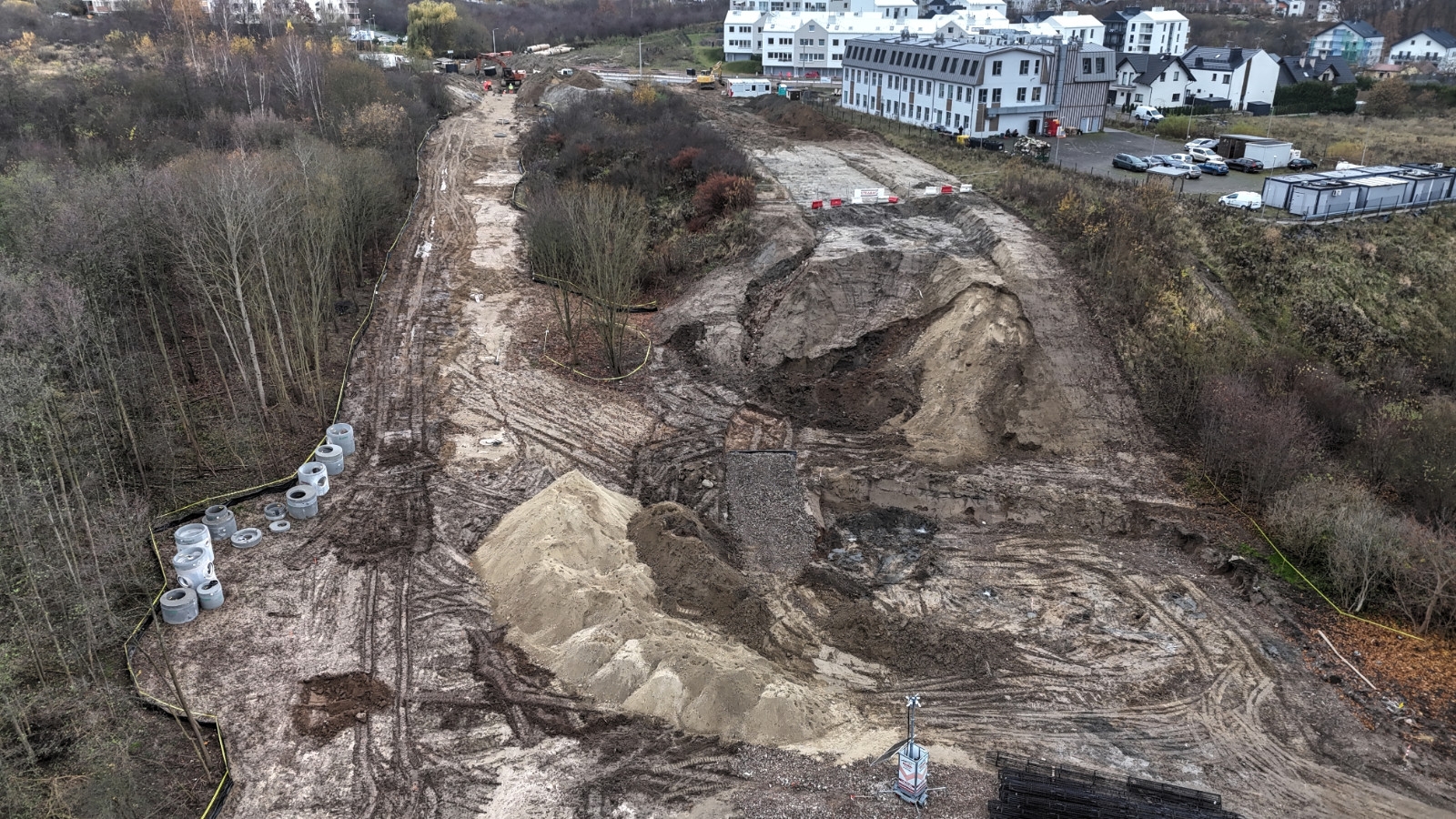 Wykonawca, firma Strabag, ma już za sobą tyczenie geodezyjne i organizację zaplecza budowy. Pierwszy etap prac postępuje na terenach poza obowiązującym ruchem drogowym i nie powoduje utrudnień dla mieszkańców.