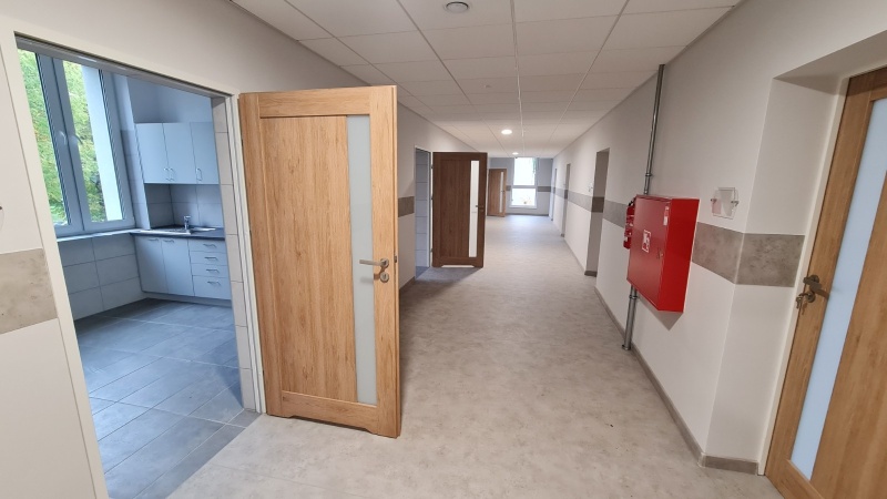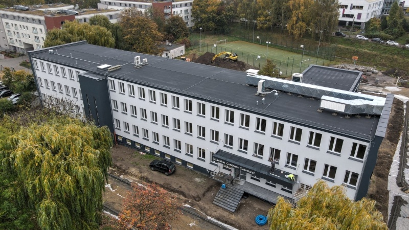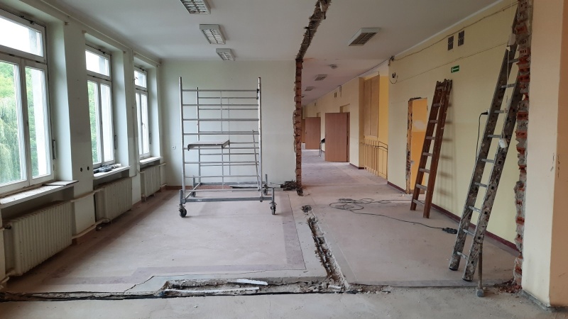 Gotowa jest nowa elewacja budynku. Wybudowano nowy podjazd i miejsca postojowe. Gotowy jest także podjazd dla osób z ograniczoną mobilnością. Trwają prace wewnątrz obiektu