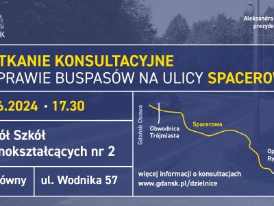 W czwartek, 27 czerwca o godz. 17.30 w holu głównym ZSO nr 2 przy ul. Wodnika 57 odbędzie się spotkanie z mieszkańcami Dzielnicy Osowa w sprawie buspasów na ul. Spacerowej.
