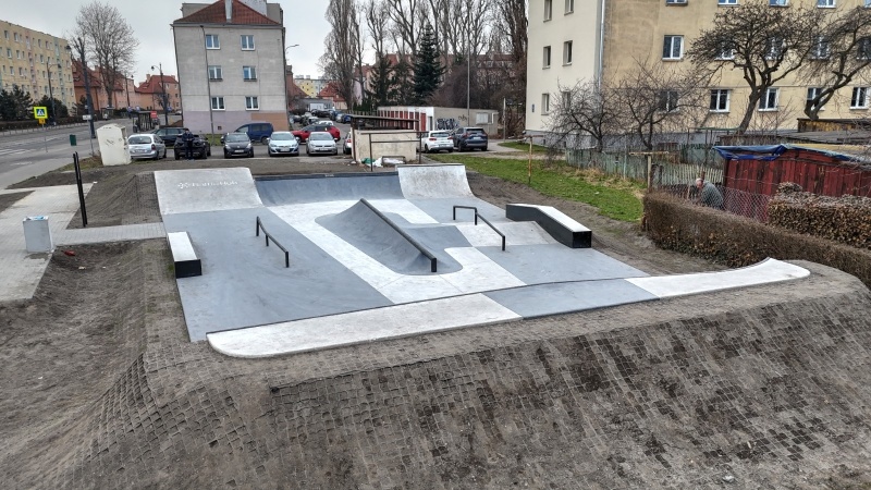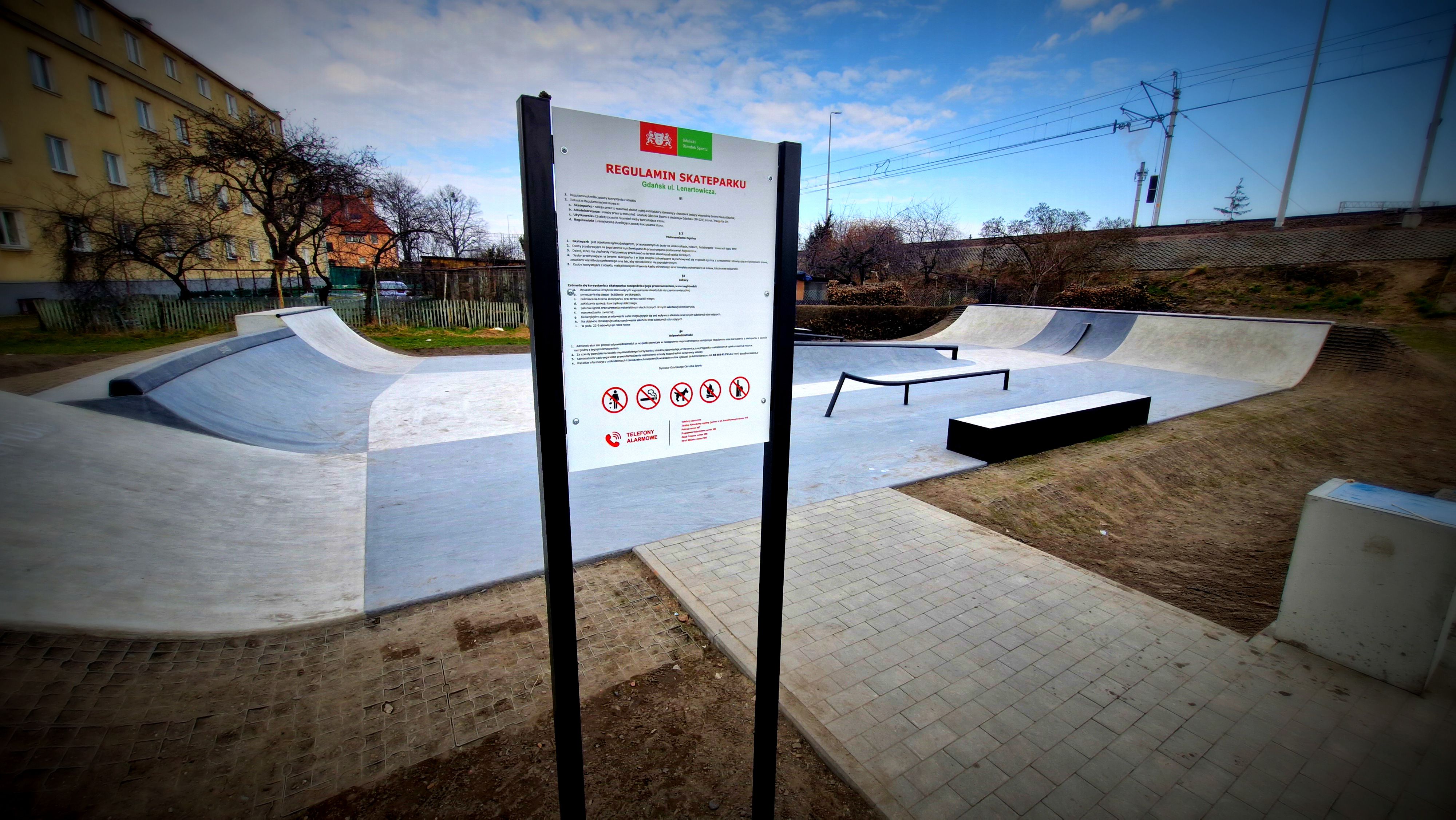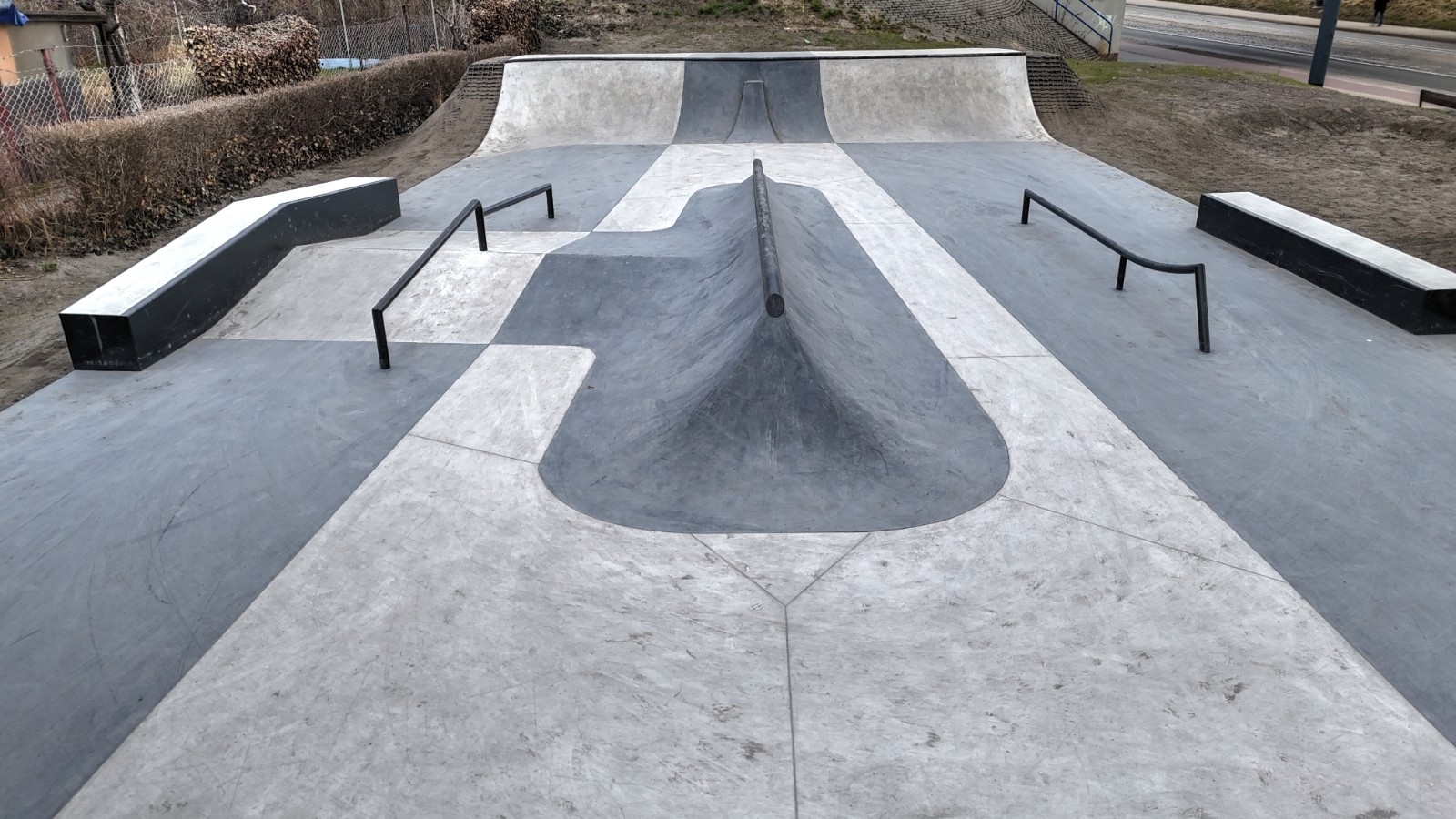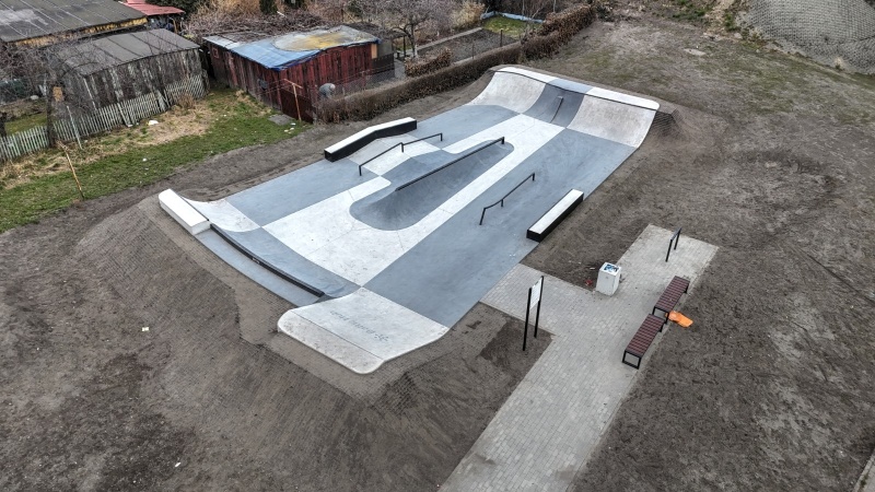 Powstała betonowa, gładka nawierzchnia przeznaczona do jazdy na deskorolce, rolkach i hulajnodze. Wykonawca zapewnił kluczowe elementy skateparku, takie jak funboxy, rampy, banki, quaterpipe’y, grindboxy oraz poręcze. Dodatkowo zamontowano elementy małej architektury: ławki, kosze na śmieci i stojak na rowery. Cały teren został uporządkowany i obsiany trawą.