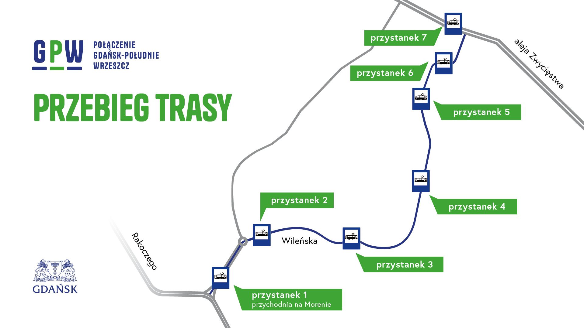 - 7 nowych przystanków, w tym jeden węzeł przesiadkowy autobusowo-tramwajowy,