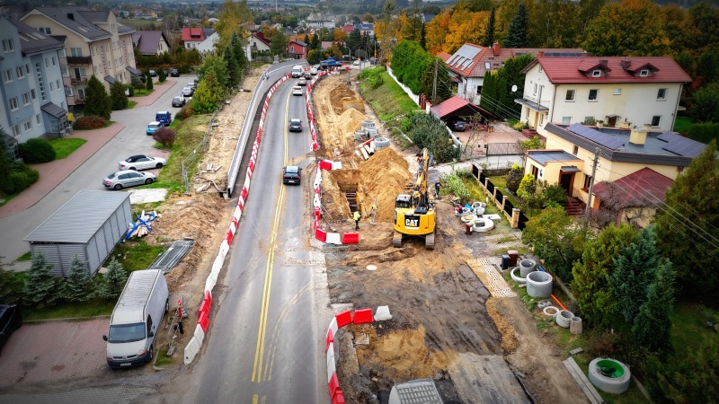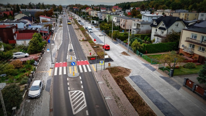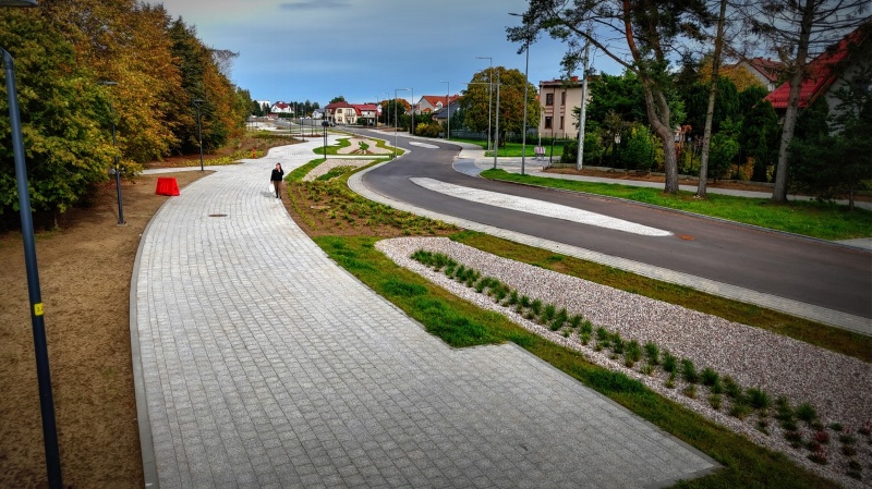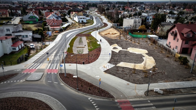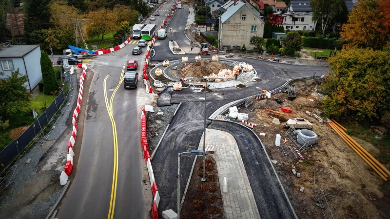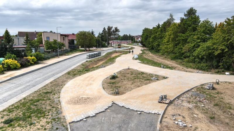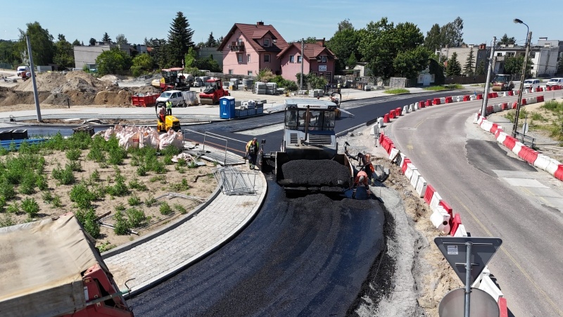 Wykonano już wszystkie nawierzchnie na jezdniach. Obecnie prowadzone są jeszcze prace związane z wykonaniem infrastruktury pieszej i rowerowej.