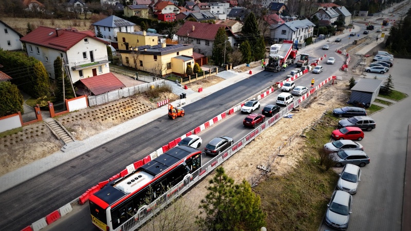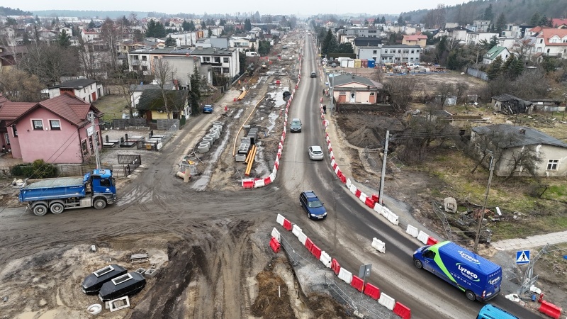 Trwają przygotowania do przełożenia ruchu już na na nową nawierzchnię, na odcinku od ul. Wodnika do ul. Kielnieńskiej.