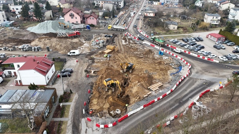 Skrzyżowanie Wodnika/Kielnienska, i część Kielnienska od Barniewickiej w kierunku Chwaszczyna: Wykonawca wprowadził tymczasową organizację ruchu, w najbliższym czasie przystąpi do frezowania istniejących ulic i rozpocznie przebudowę sieci kanalizacji sanitarnej i rozpocznie budowę sieci kanalizacji deszczowej.