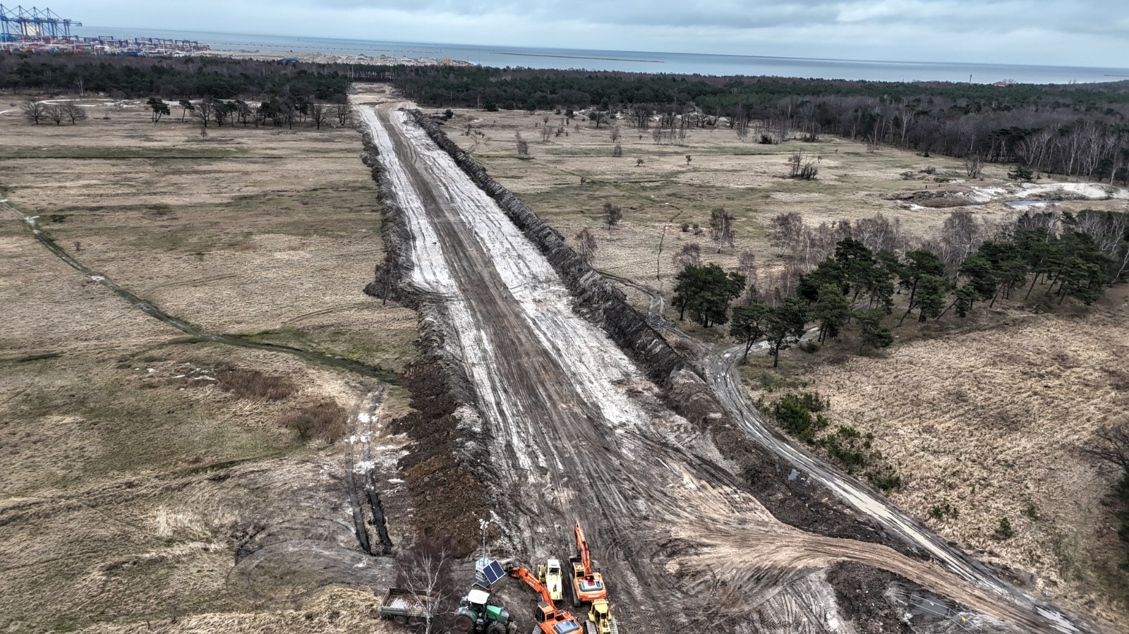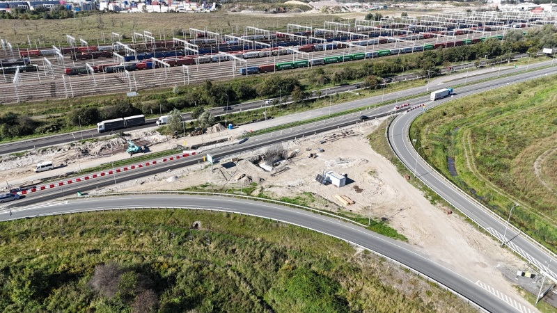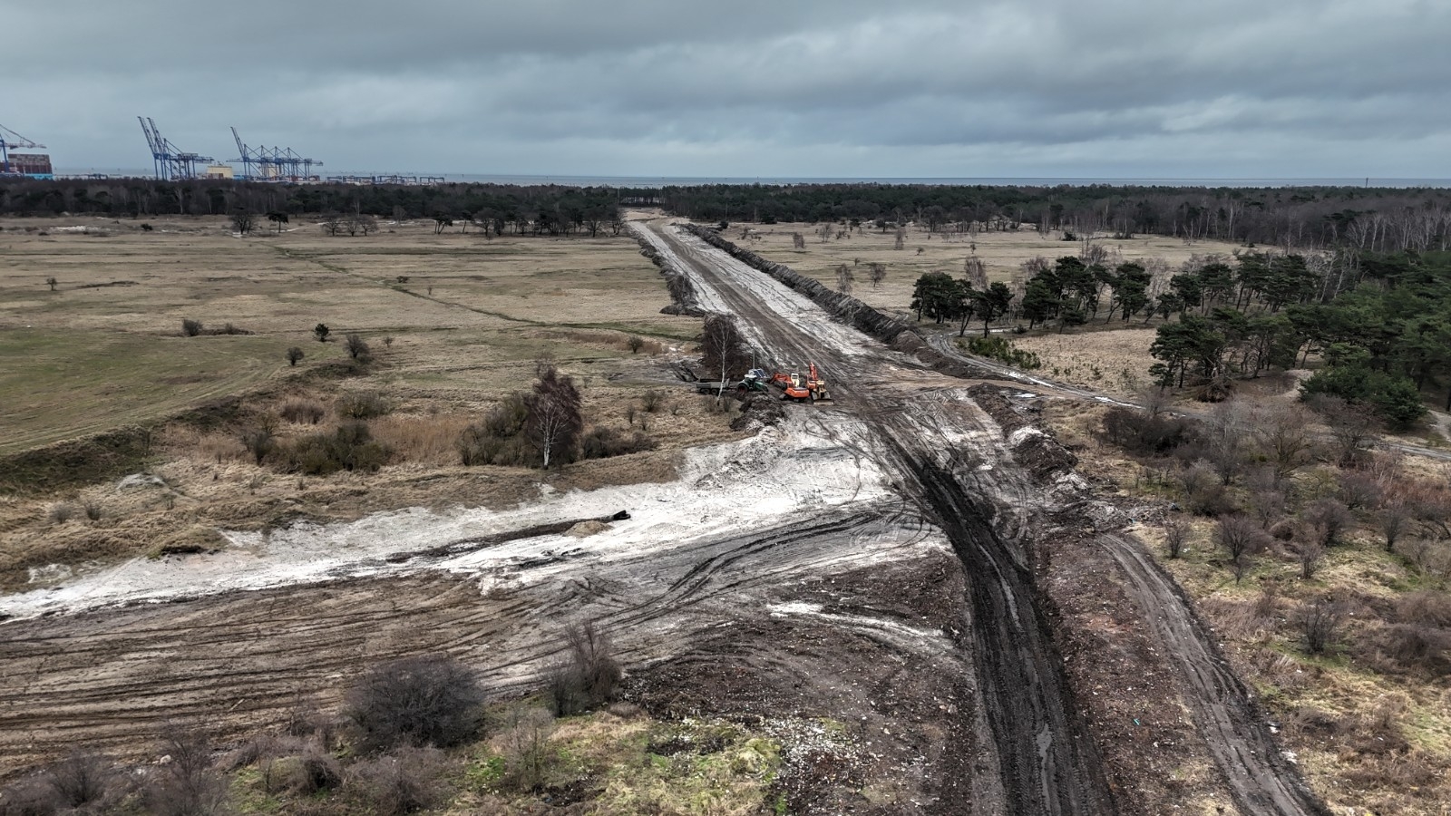 Obecnie trwają prace związane z wykonaniem filarów wiaduktu drogowego nad Trasą Sucharskiego. Jednocześnie prowadzone są prace ziemne związane z budową układu drogowego bliżej terenów portu.