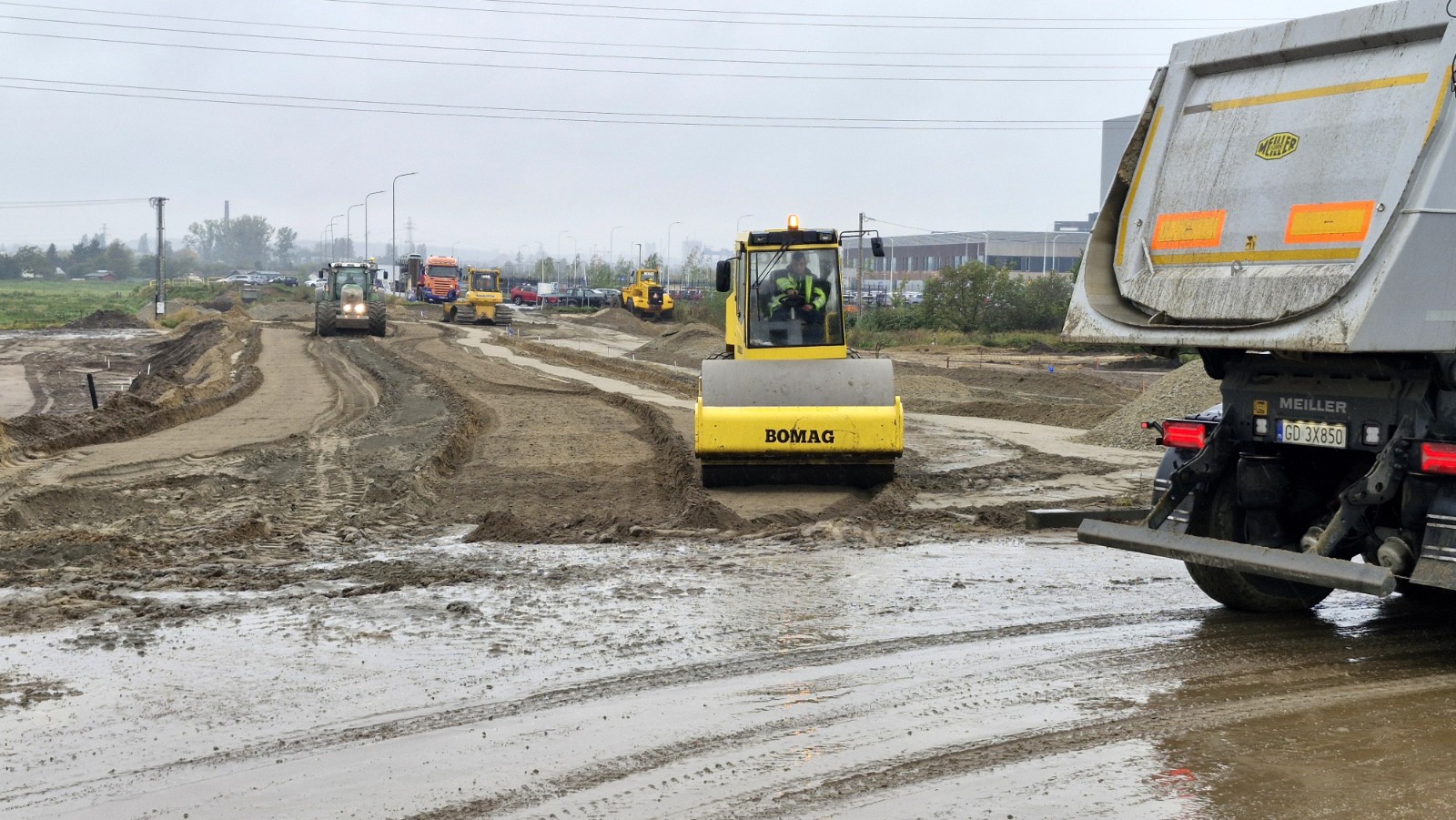 Trwa wykonywanie nowych filarów wiaduktu. Jesnocześnie na pozostałym odcinku trwają prace ziemne.