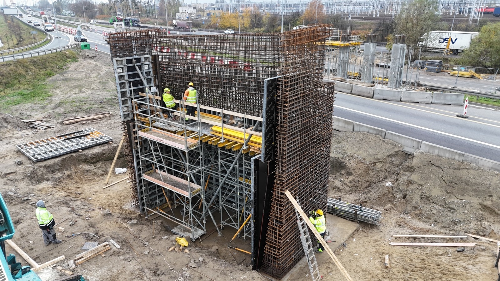 Kontynuowane są prace związane z pracami ziemnymi i budową filarów wiaduktu.