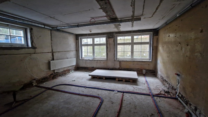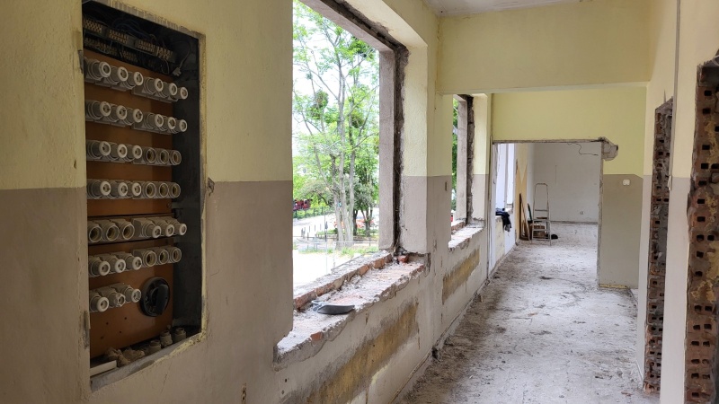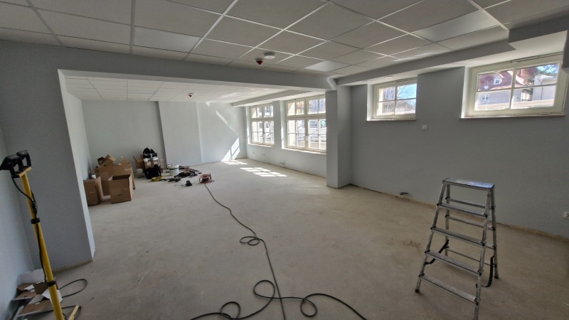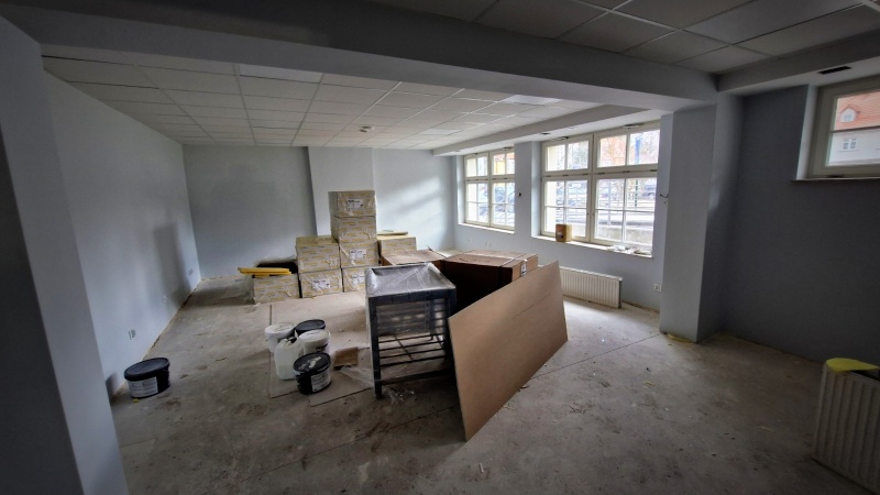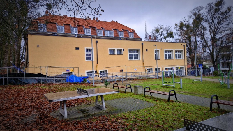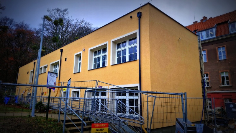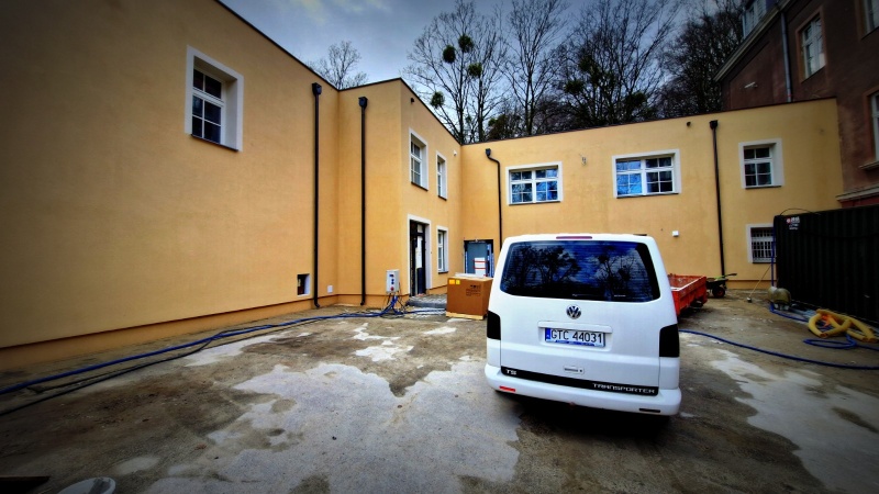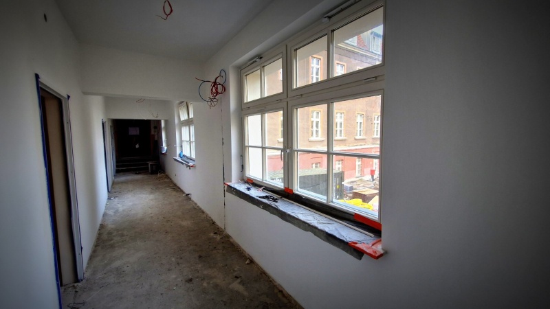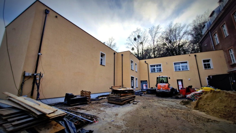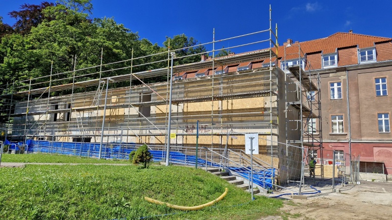 Wykonano nową elewację budynku. Obecnie prace koncentrują się wewnątrz obiektu.