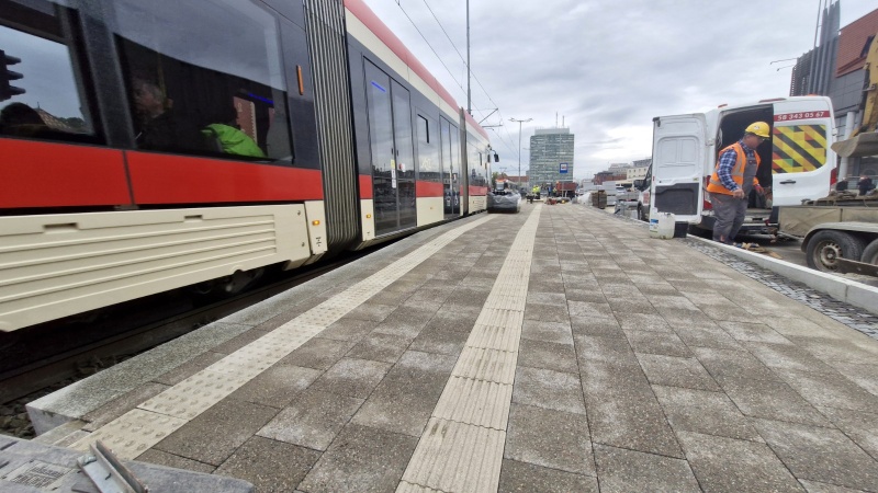 Udostępnienie przejścia nie oznacza końca robót. W najbliższym czasie Wykonawca przystąpi do prac związanych z przebudową peronów tramwajowych i montażem wiat przystankowych. Z uwagi na to, że będzie to nadal teren budowy, prosimy o zachowanie ostrożności.
