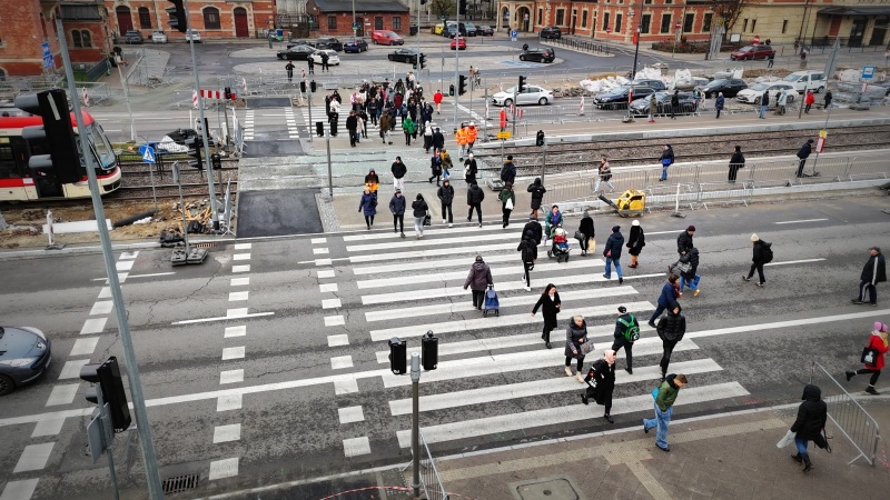 Nowe przejście dla pieszych to nie tylko wymalowane pasy, to także przejazd rowerowy w obrębie węzła, wyznaczenie miejsc postojowych typu kiss&ride przy Dworcu Głównym, wydłużenie peronów tramwajowych i stworzenie możliwości wejścia na przystanki od strony przejścia dla pieszych. Projekt jest tak dostosowany, aby zminimalizować przebudowę infrastruktury podziemnej.