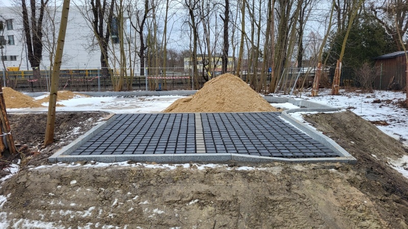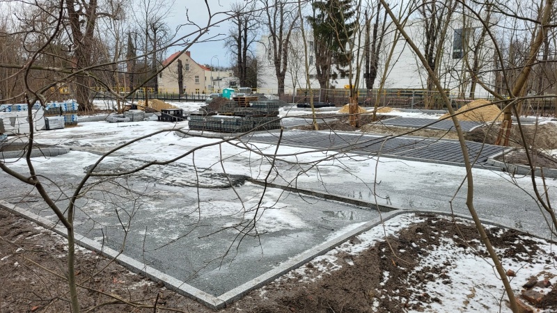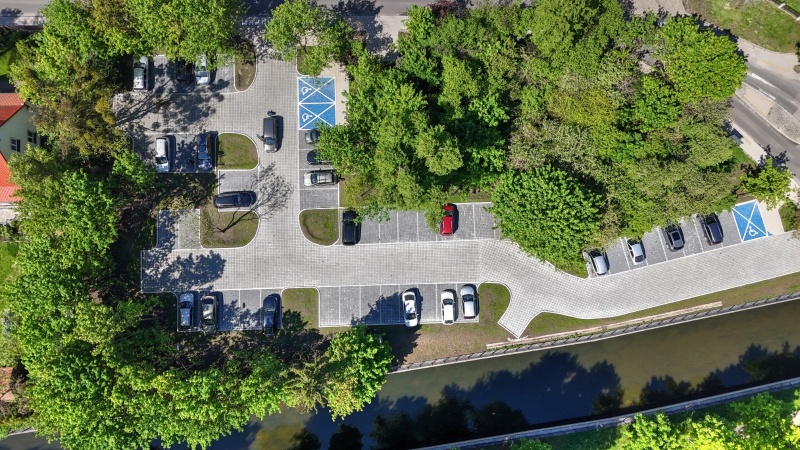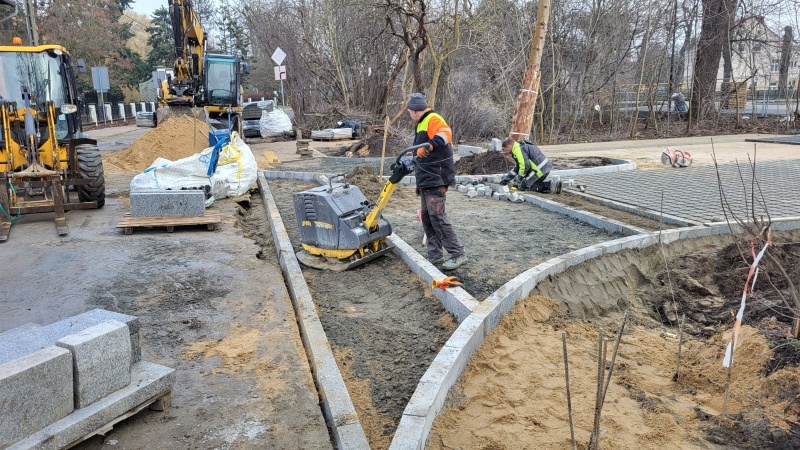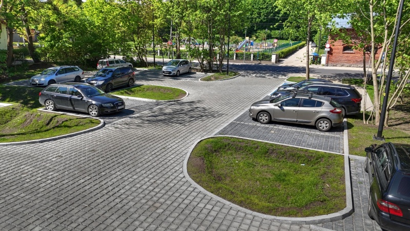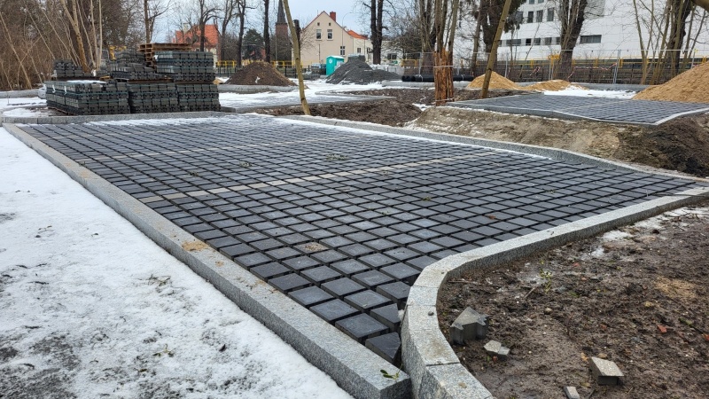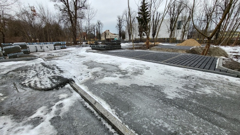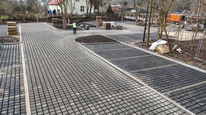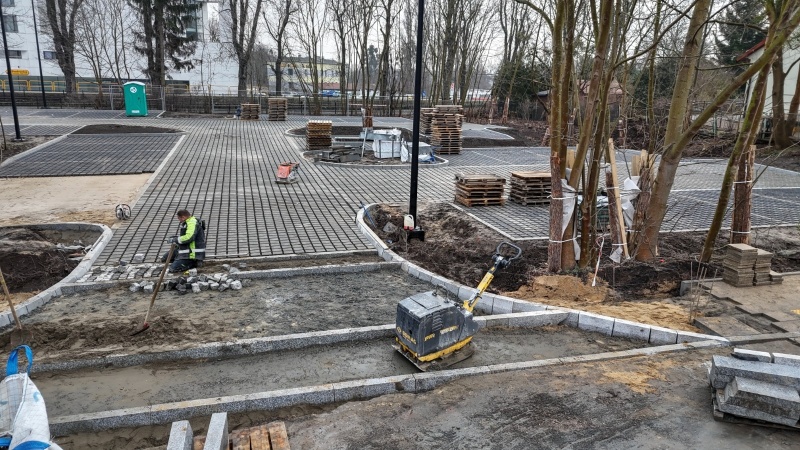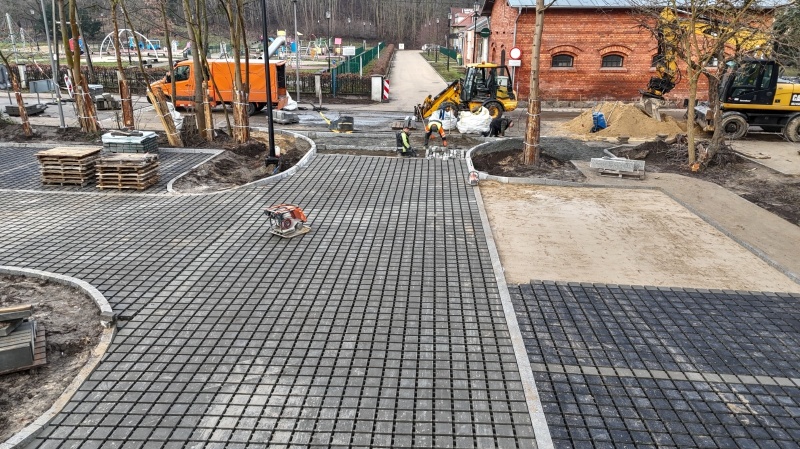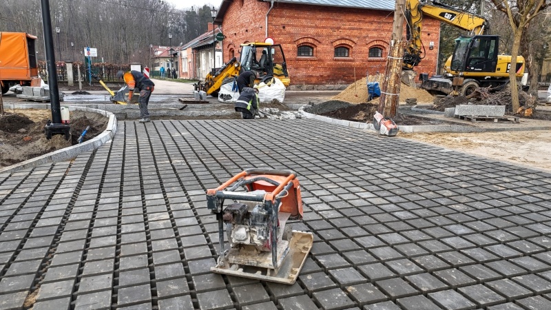 Obecnie układane są nawierzchnie na nowym parkingu.