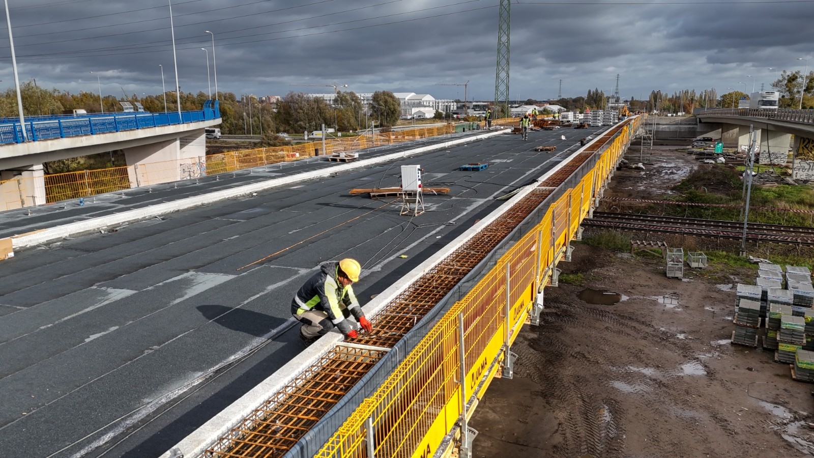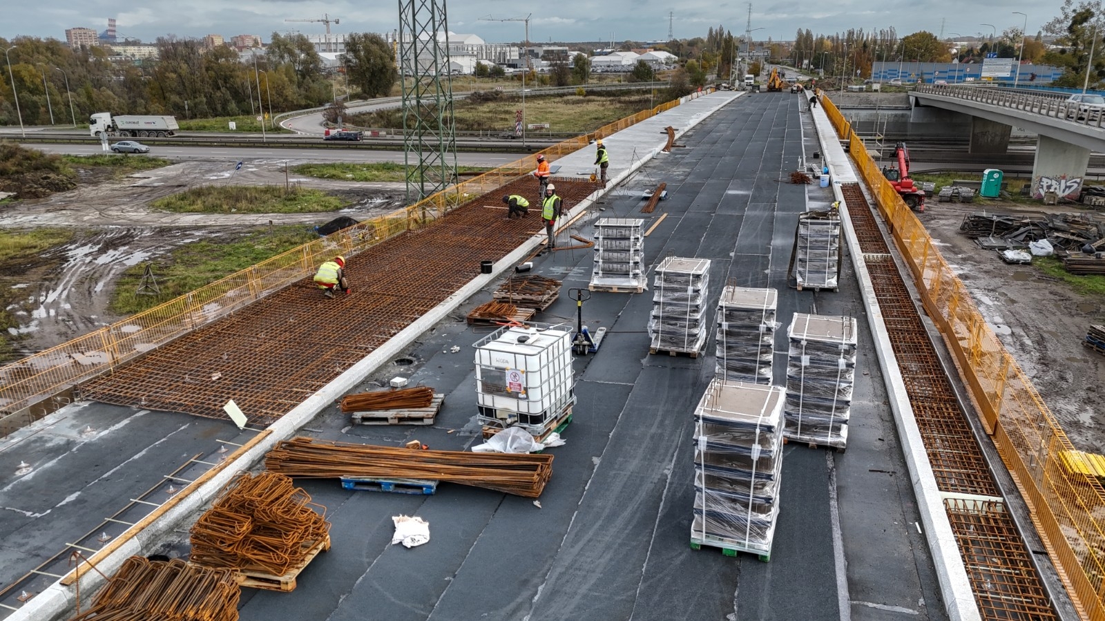 Wykonano już nowe filary i zabetonowano całą płytę mostu. W listopadzie będą wykonywane m.in. prace wykończeniowe związane z układaniem mas asfaltowych na dojazdach do obiektu i na obiekcie, prace wykończeniowe podpór wiaduktu i montaż wyposażenia wiaduktu.