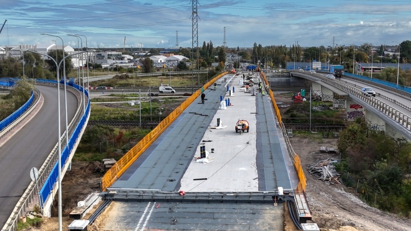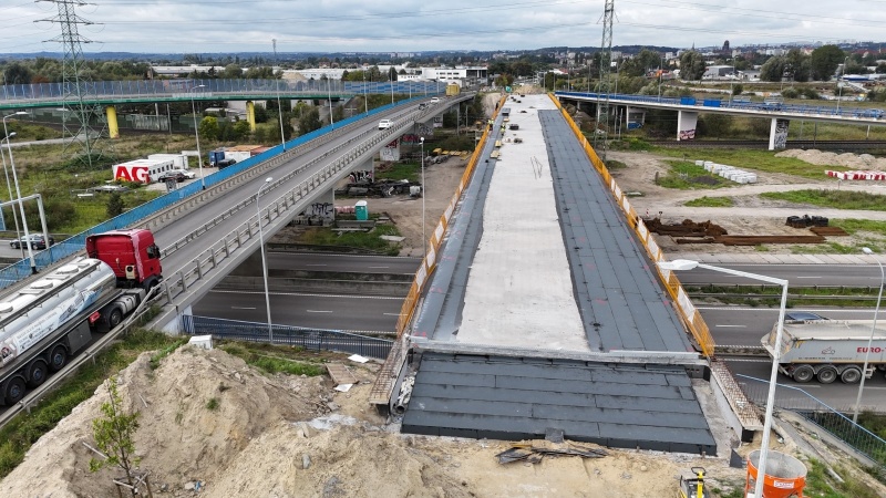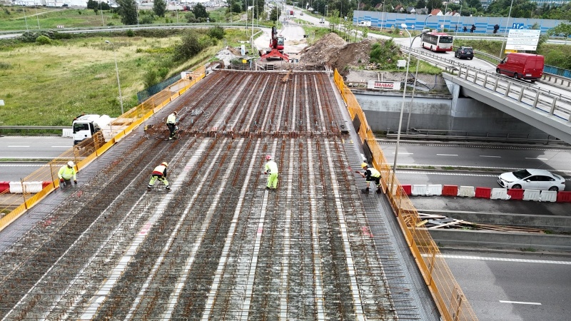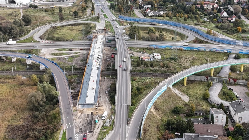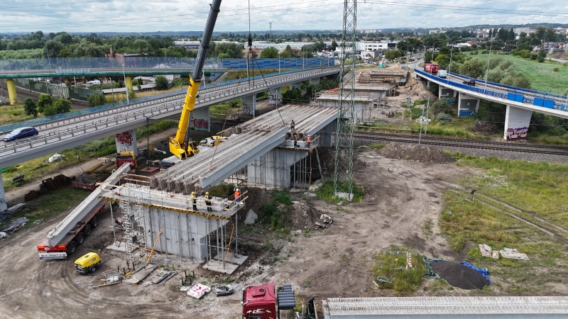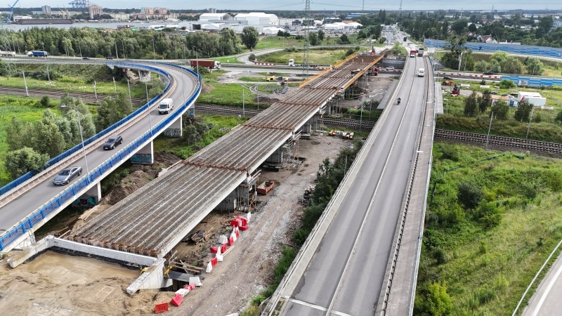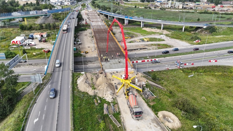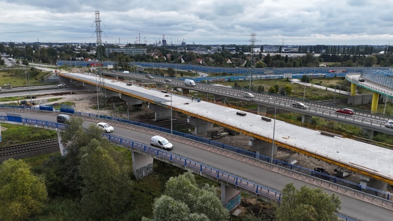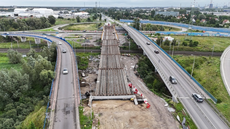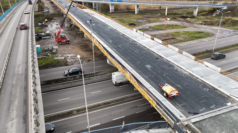 W minionych dniach zamontowano płyty ustroju nośnego estakady nad Trasą Sucharskiego i nad środkowym odcinku.