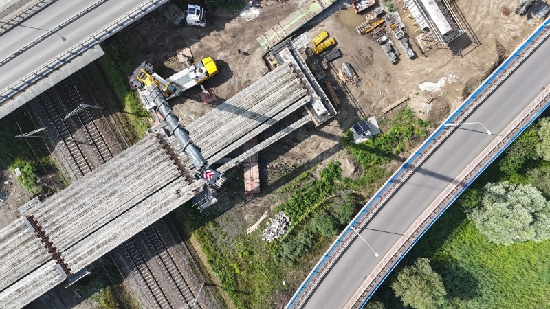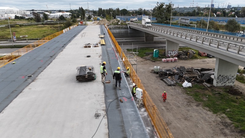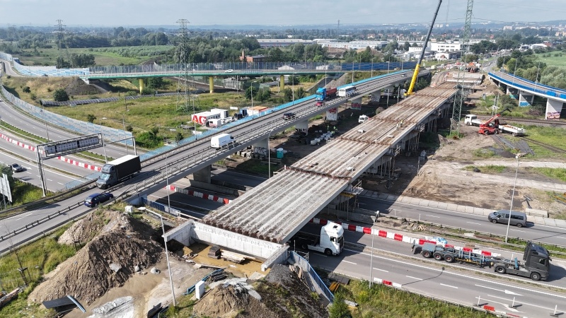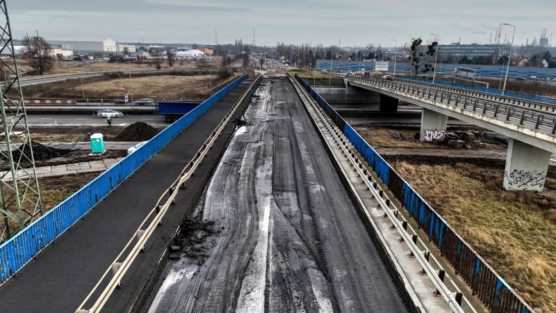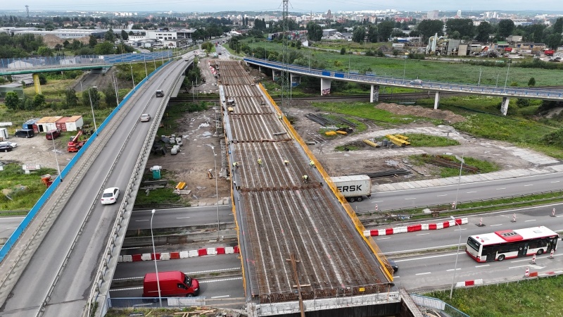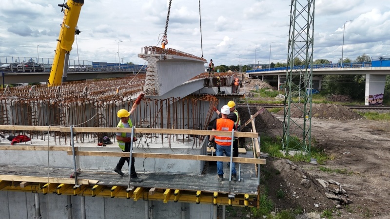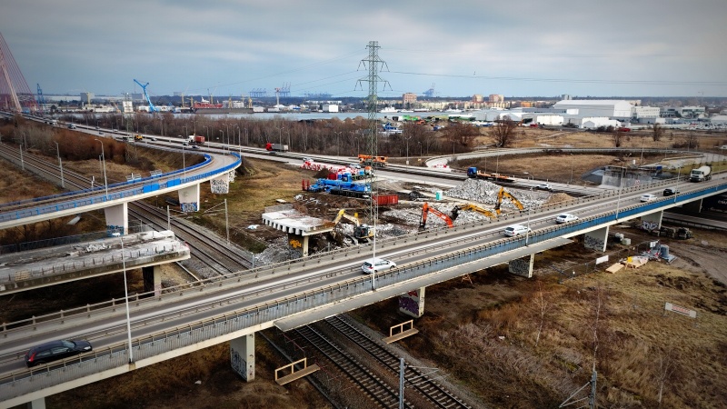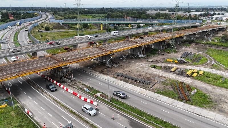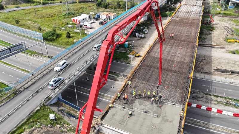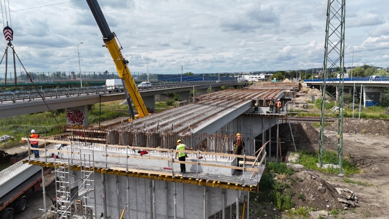 W minionych dniach zamontowano płyty ustroju nośnego estakady nad Trasą Sucharskiego i nad środkowym odcinku.