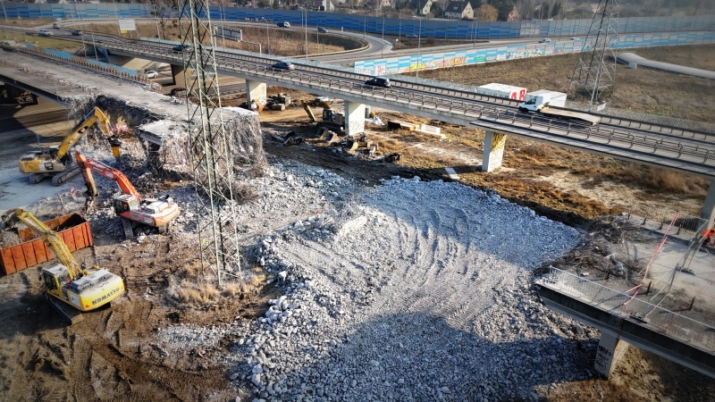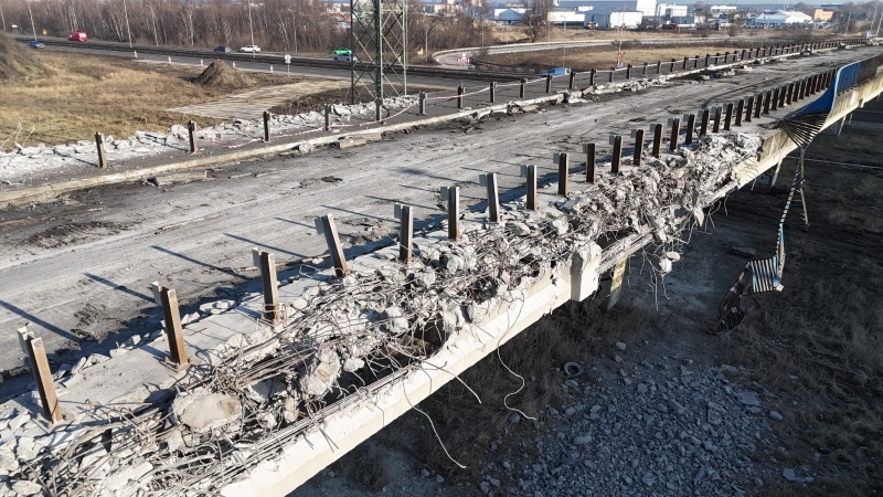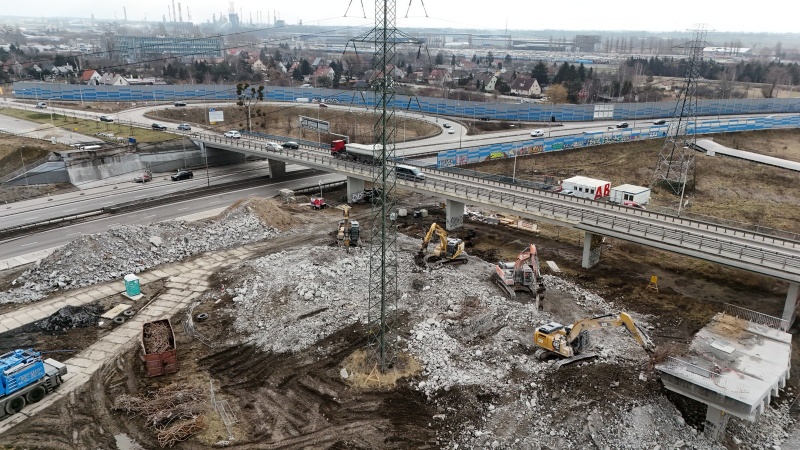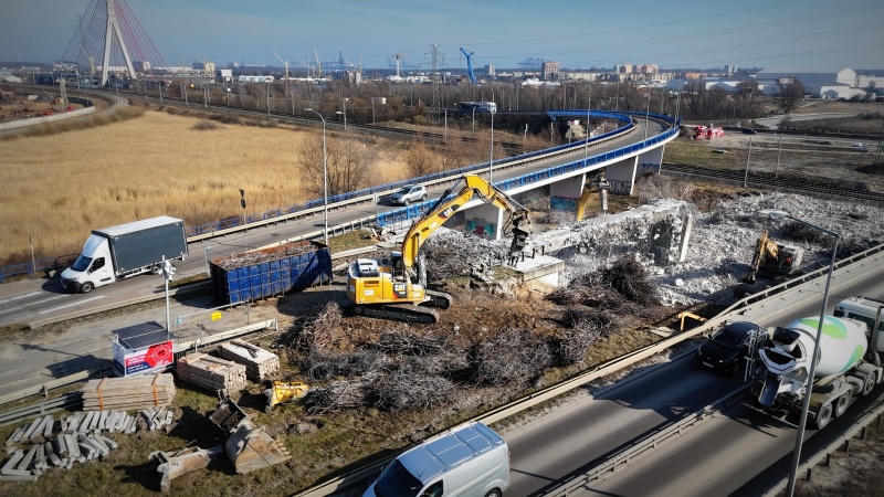W ostatnich dniach kontynuowane były prace związane z rozbiorką kolejnych przęseł estakady. Prace idą zgodnie z harmonogramem.