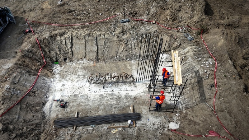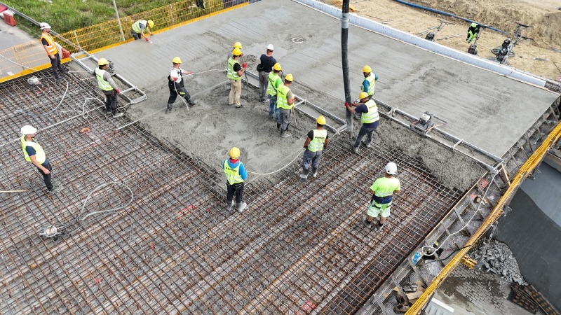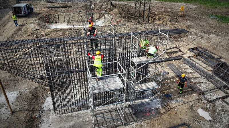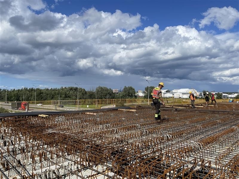 Pod obiektem zostały wykonane izolacje fundamentów. Trwają prace przygotowawcze do układania warstw wzmocnienia pod najazdy do obiektu.