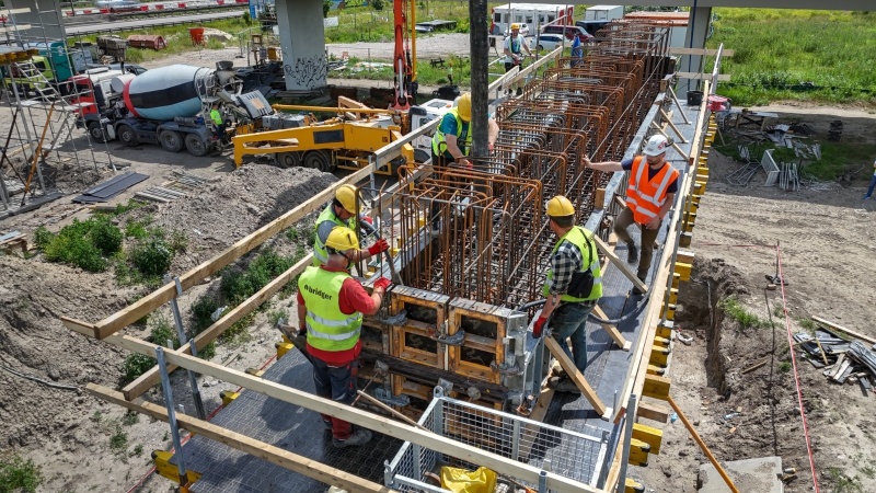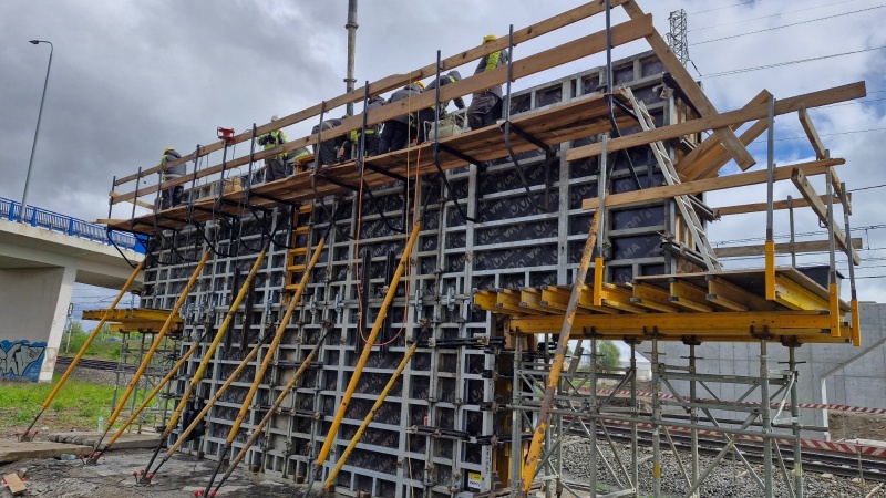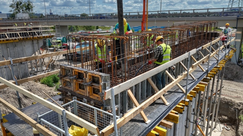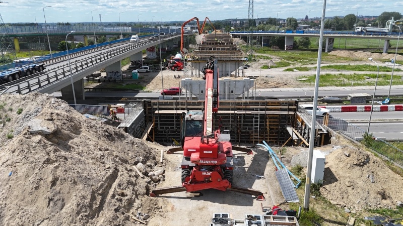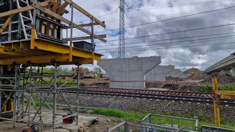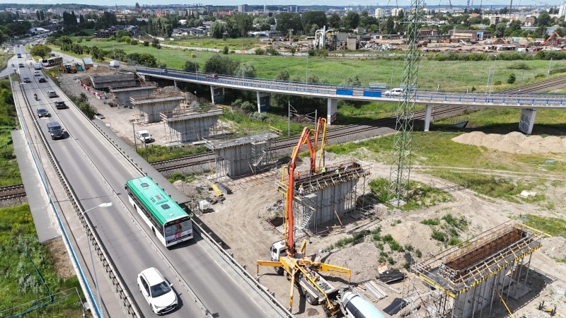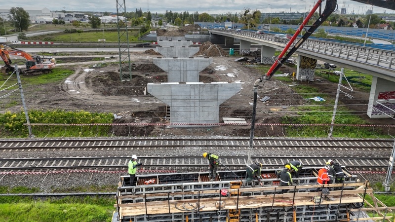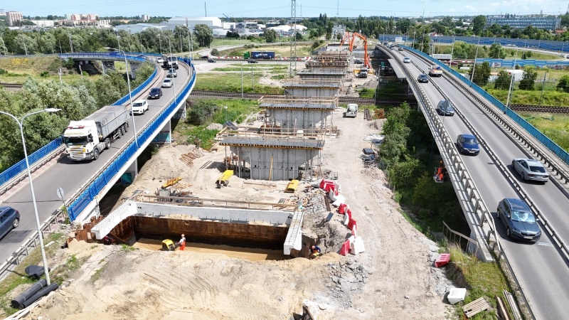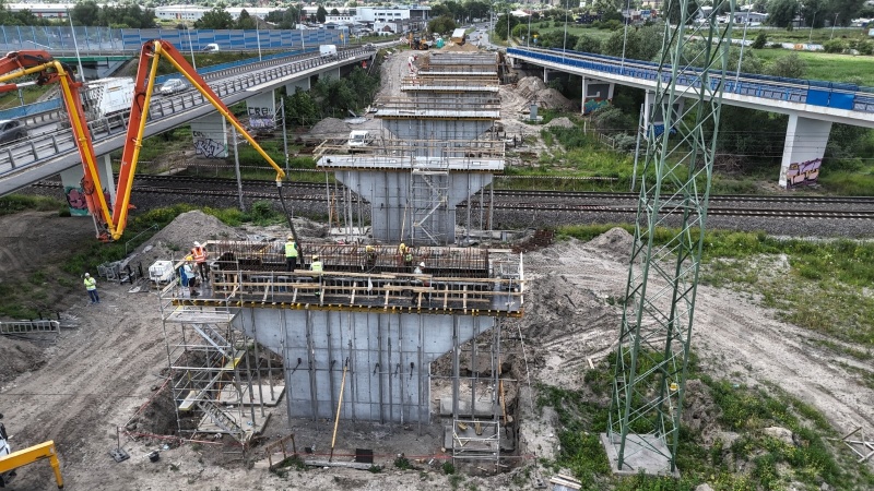 Obecnie wykonawca skupia się na budowie nowych filarów estakady.